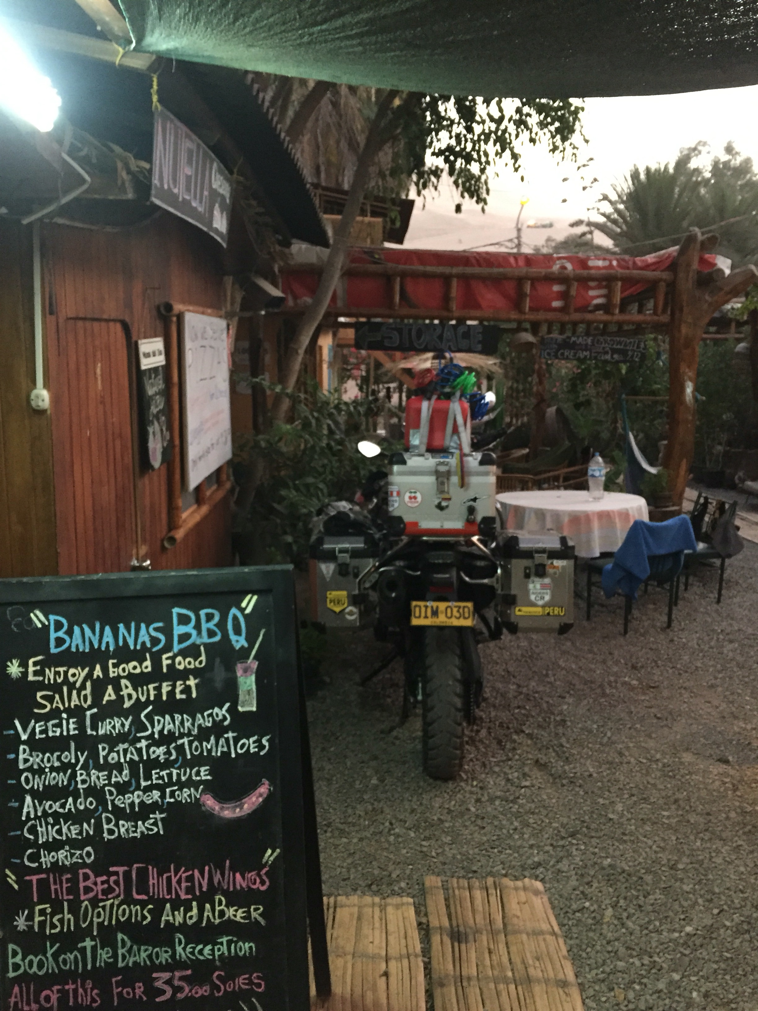 Estuve varios minutos tratando de encontrar el hostal, que está muy bueno y me dejaron parquear la moto adentro.