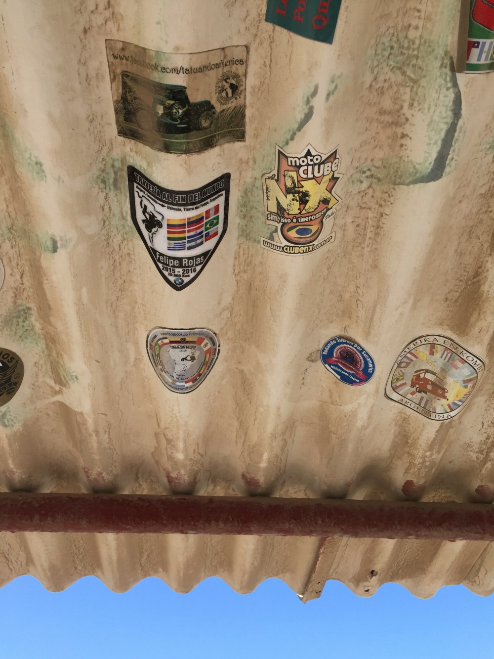 Mi calcomanía al lado de la de pura vida (dicho costarricense), que pegó Sebastián Carmona la semana pasada: