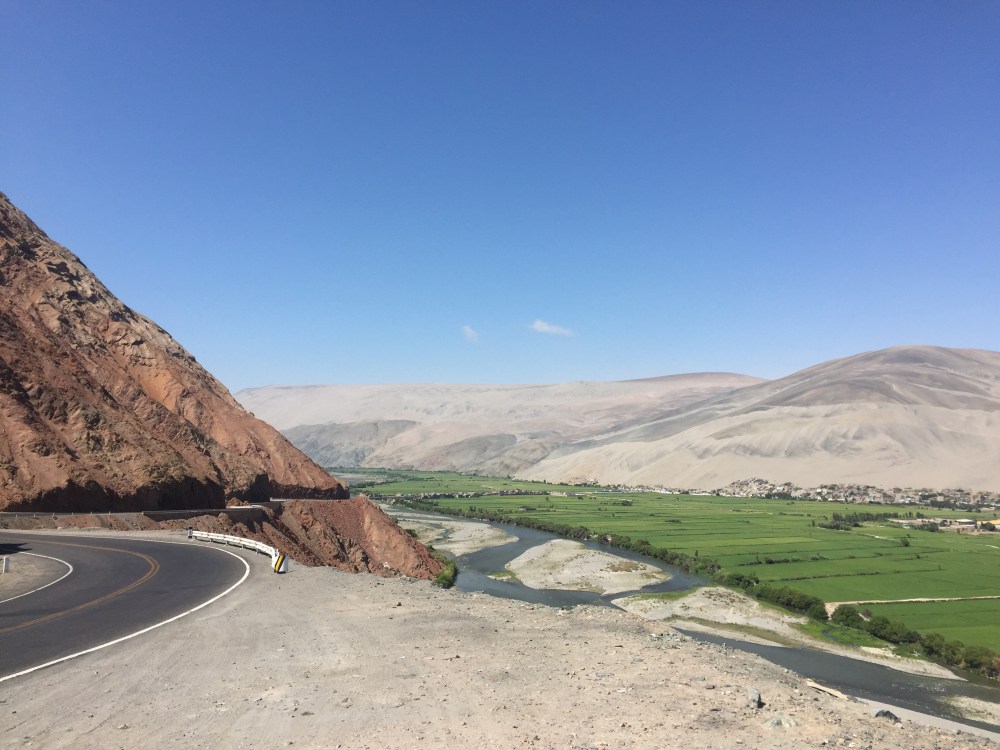 Llegando a Ocoña se puede ver mucho verde en medio del desierto, estos son cultivos de arroz que riegan con el río que pasa al lado. Me pareció muy interesante el contraste y por eso me bajé a tomar fotos: