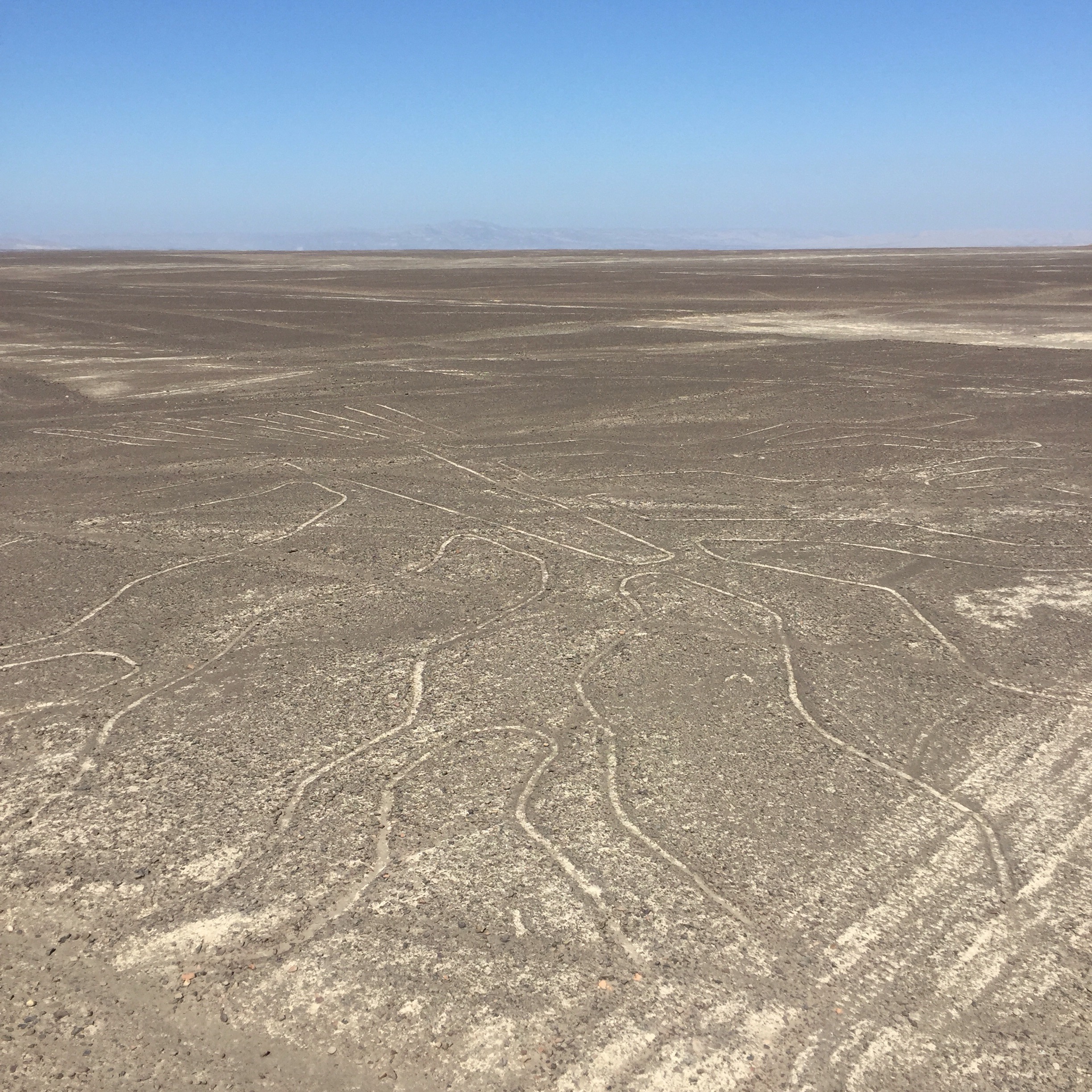 * Tomado de internet: Fueron trazadas por la cultura nazca y están compuestas por varios cientos de figuras que abarcan desde diseños tan simples como líneas hasta complejas figuras zoomorfas, fitomorfas y geométricas que aparecen trazadas sobre la superficie terrestre. Desde 1994, el Comité de la Unesco ha inscrito Las líneas y geoglifos de Nazca y de Pampas de Jumana como Patrimonio de la Humanidad.