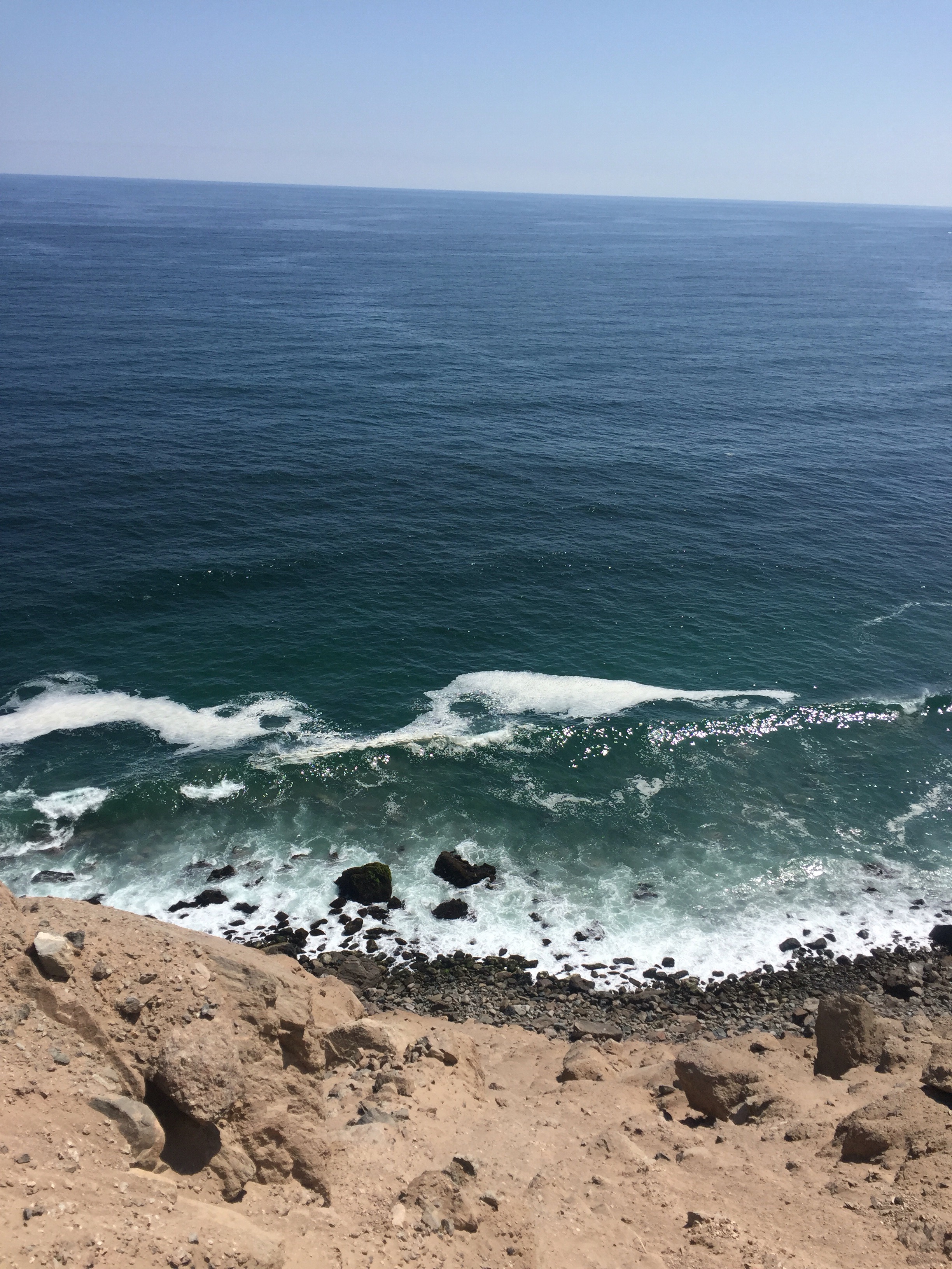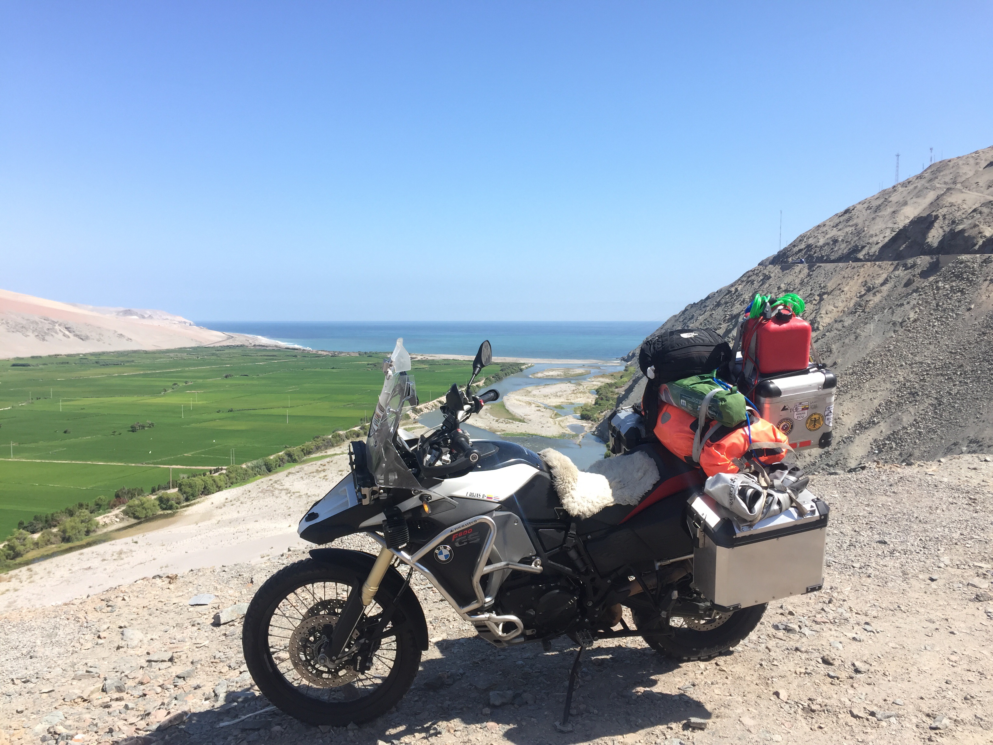 La carretera es muy bacana después de Nazca, cuando uno llega a la costa, empiezan las curvas y se va bordeando el mar. Esta vía tiene una protección muy precaria y uno no deja de pensar en qué pasaría si se fuera por el voladero… Al lado izquierdo tampoco hay buen pronóstico, porque la arena parece que se fuera a comer la carretera en cualquier momento. En ciertos tramos uno se siente como manejando por Marte.