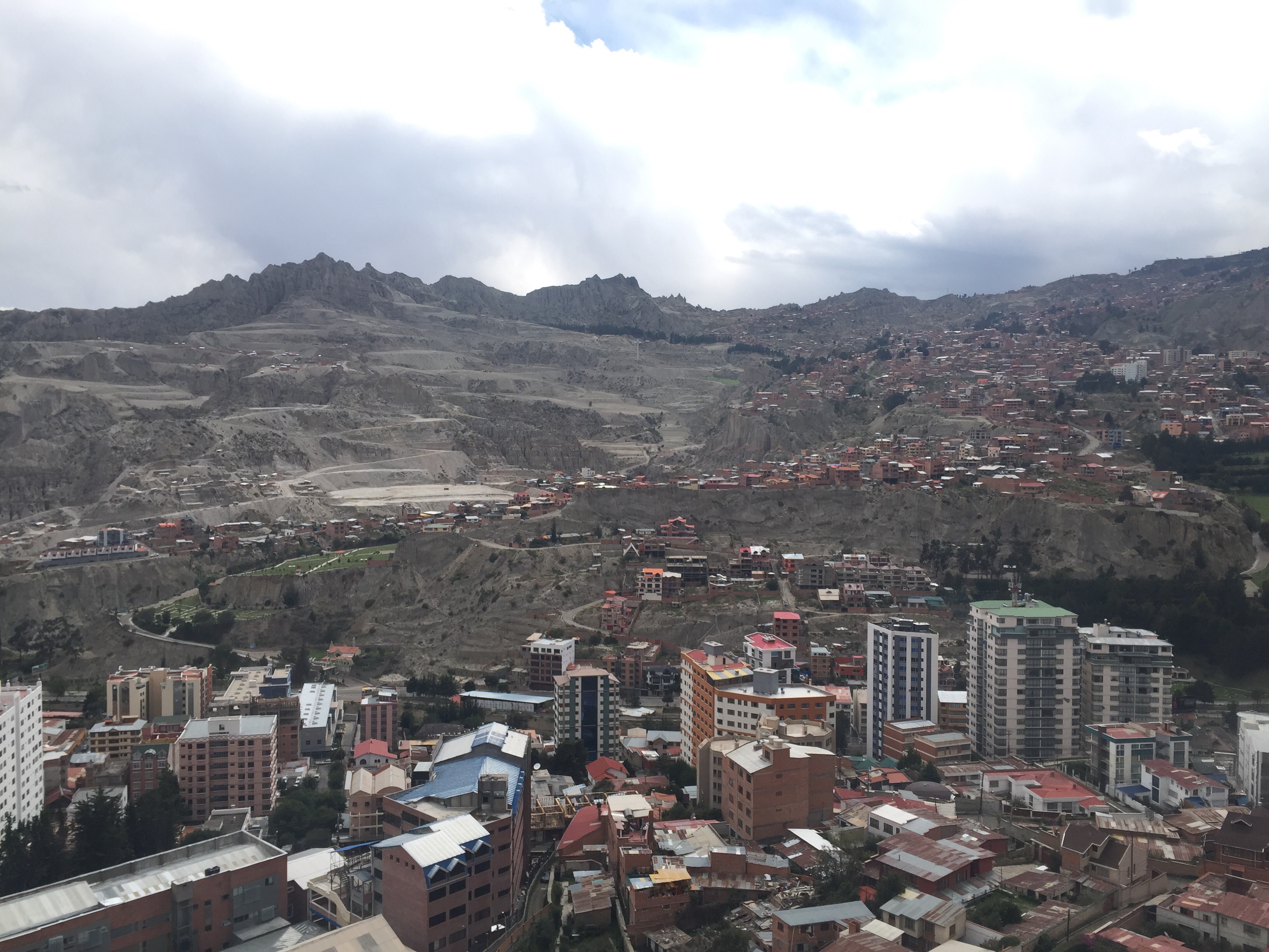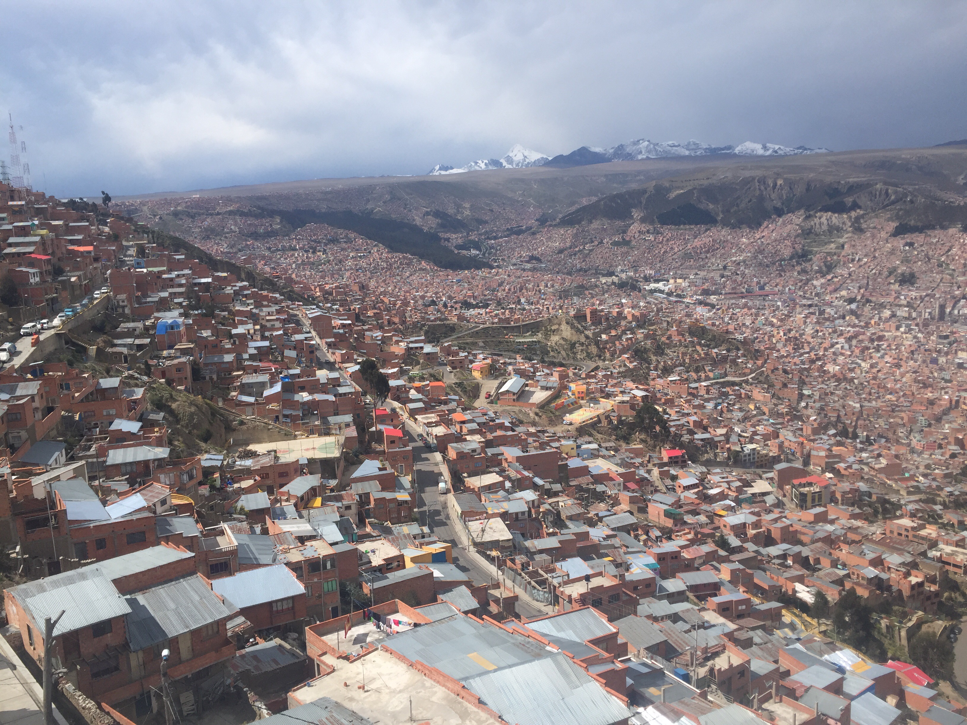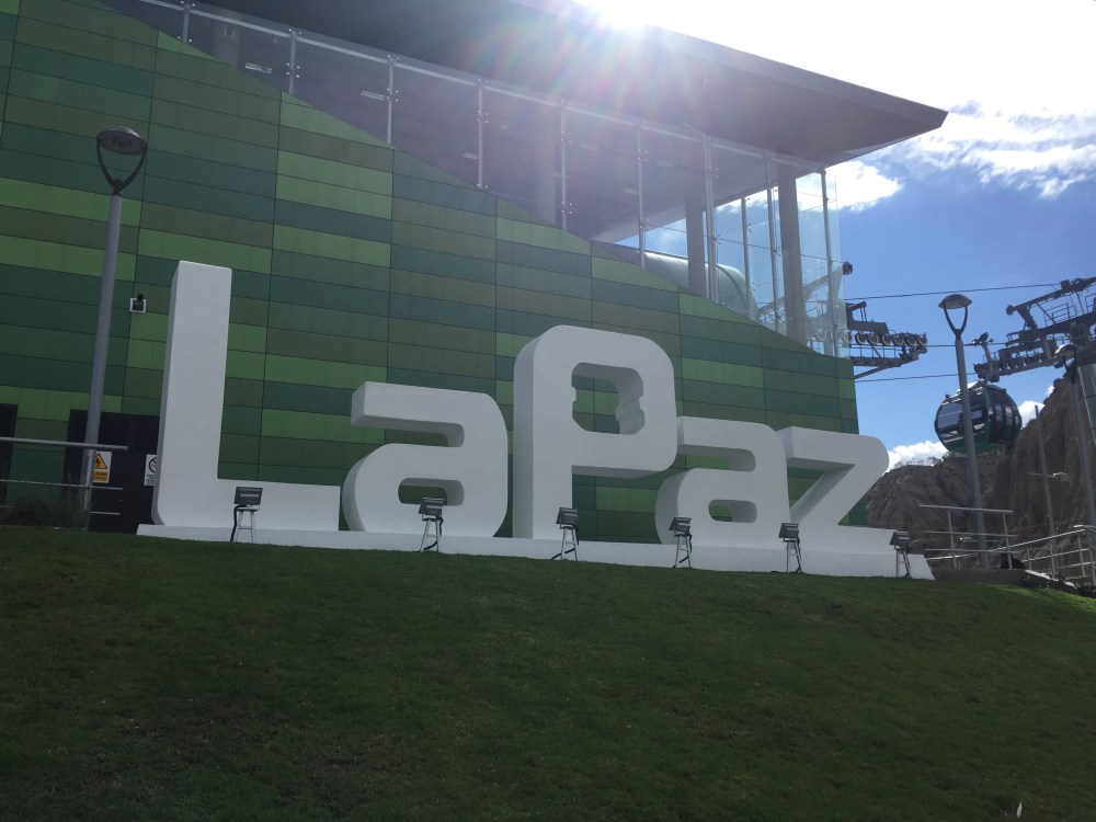 Desde la última estación del teleférico amarillo (Qhana Pata), la vista hacia La Paz es impresionante, también se pueden ver los nevados de Chacaltaya, Mik’aya, Mururata, Illimani: