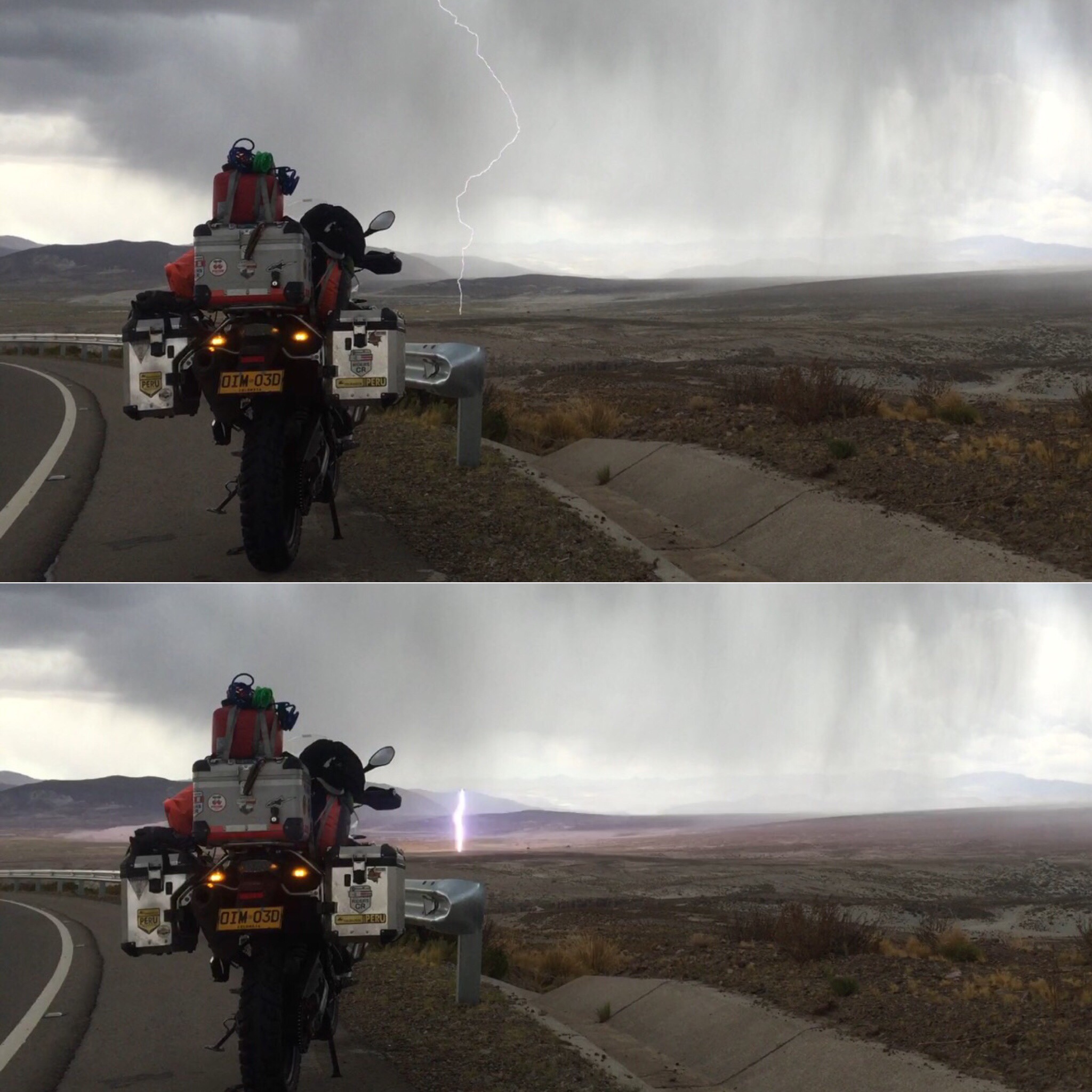 Faltando 150 km para llegar, me toca otro diluvio; muchos rayos y granizo…