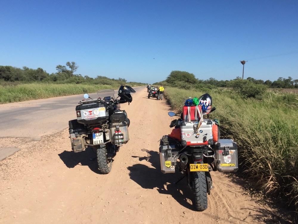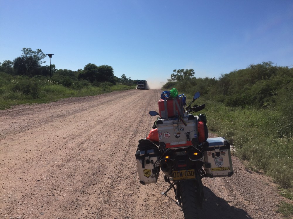 Me monto a la moto y sigo. En esta vía entre Resistencia y la frontera, hay aproximadamente cinco retenes, todos esperando para sacarle billete a uno, con la misma técnica de los 2,600 pesos y el cobro en la frontera… Así que pilas cuando pasen por ahí… Se inventan cualquier cosa para tratar de «multarlo» y que uno pague… También me han dicho que esto sólo pasa en el norte y que la policía caminera (así le dicen acá) argentina, de Córdoba para abajo, no perdona nada (así que espero que tampoco se invierten nada).