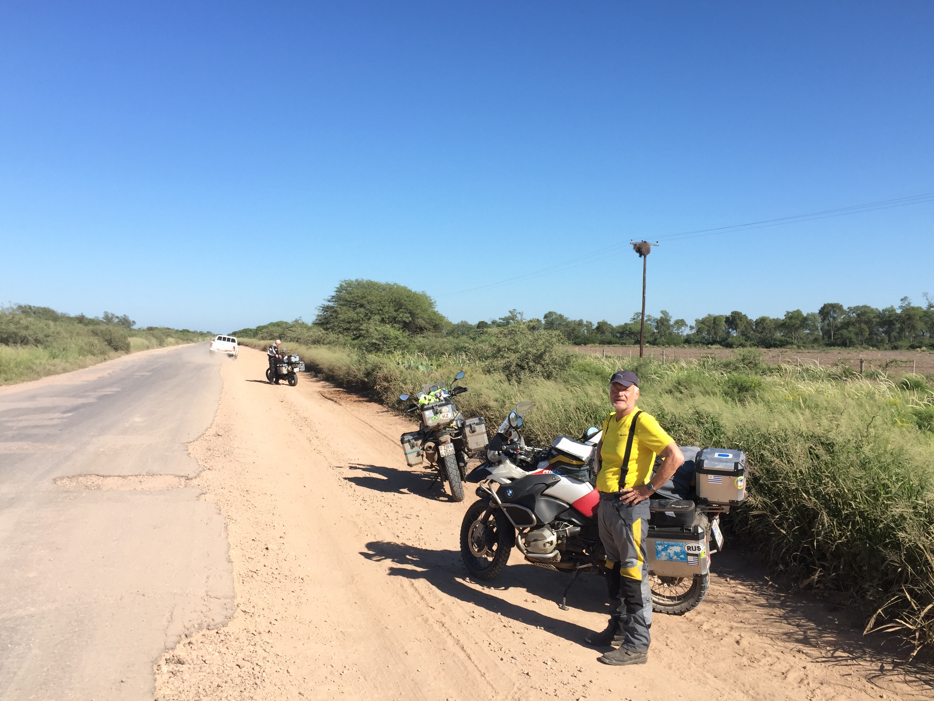 Me monto a la moto y sigo. En esta vía entre Resistencia y la frontera, hay aproximadamente cinco retenes, todos esperando para sacarle billete a uno, con la misma técnica de los 2,600 pesos y el cobro en la frontera… Así que pilas cuando pasen por ahí… Se inventan cualquier cosa para tratar de «multarlo» y que uno pague… También me han dicho que esto sólo pasa en el norte y que la policía caminera (así le dicen acá) argentina, de Córdoba para abajo, no perdona nada (así que espero que tampoco se invierten nada).