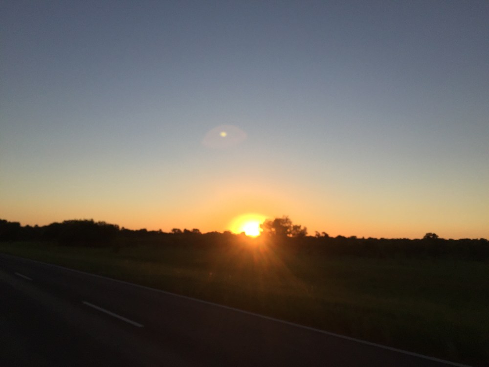 A las 6:30 a.m. empezó a salir el sol. Primera vez que veo el amanecer en moto (ya he salido en la madrugada antes, pero nunca me tocó ver el amanecer, o por lo menos nunca le puse atención).