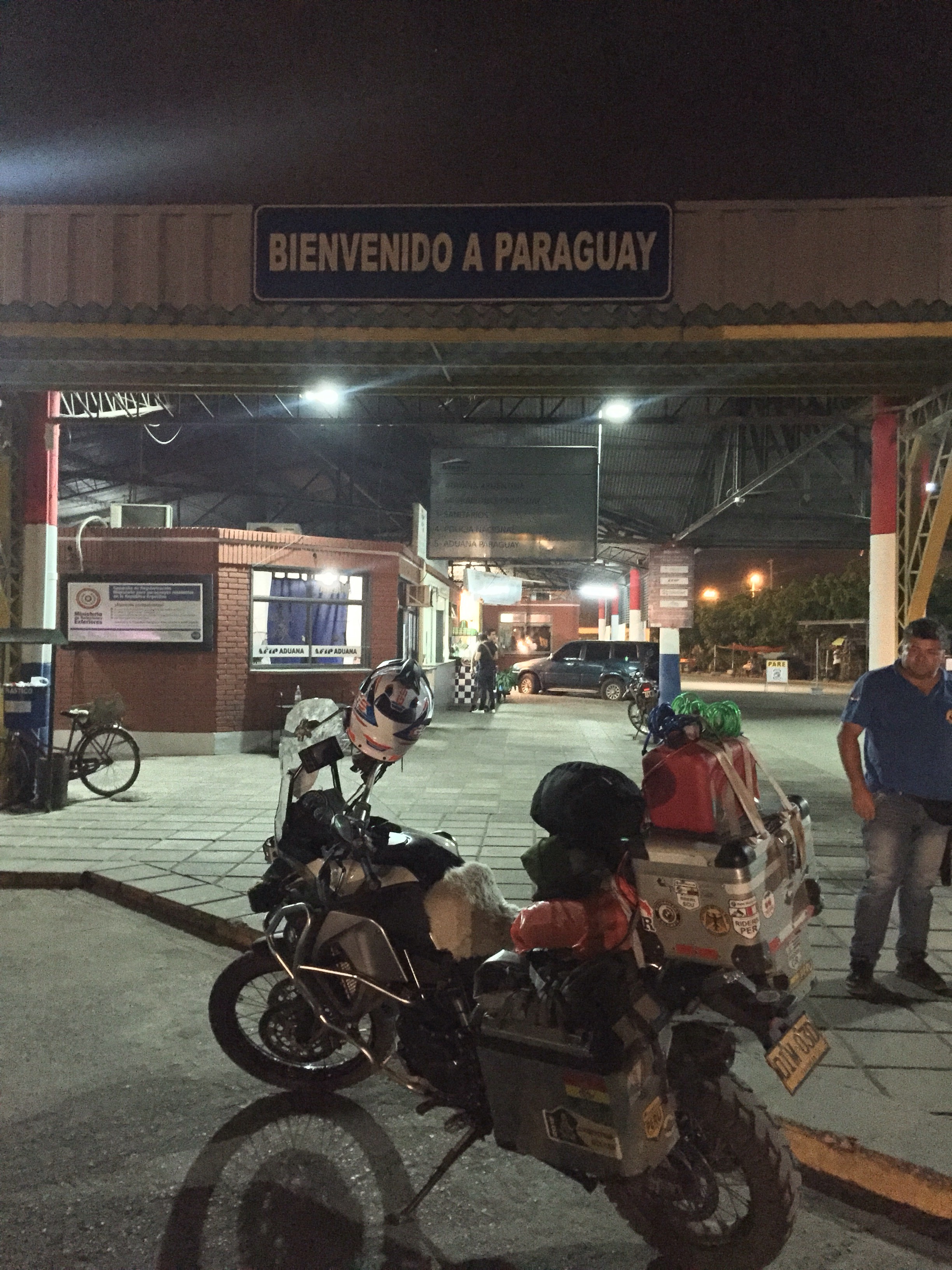 En Paraguay entré con el pasaporte costarricense; migración la hice en menos de cinco minutos, después se va a la policía (que es la oficina del lado). Los policías demasiado buena gente, me pidieron pasaporte y me hicieron un par de preguntas, antes de pedirme una foto 😂 y salir a ver mi moto (foto de nuevo). Después se hace aduana (donde te piden la información de la moto, que aparece en la licencia de tránsito). Ahí entregan el documento de importación temporal y listo.