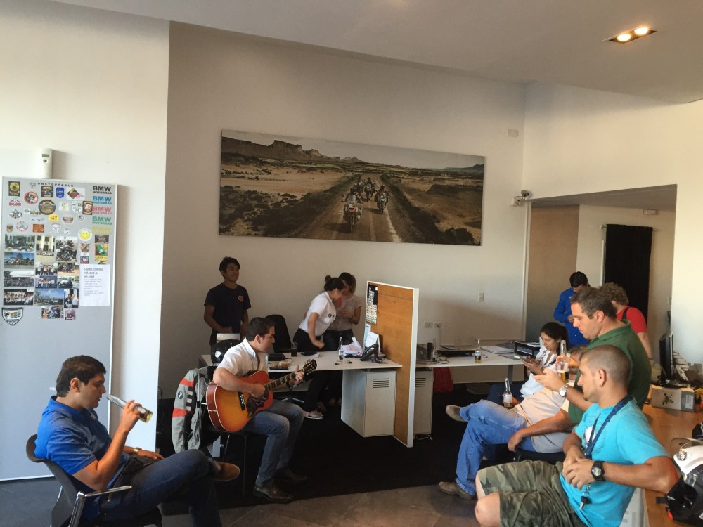 Después de unas cervezas, compraron empanadas y sacaron una guitarra! Esteban y Adrián cantaron mientras comíamos… Qué buen parche… Definitivamente es el mejor Motorrad…