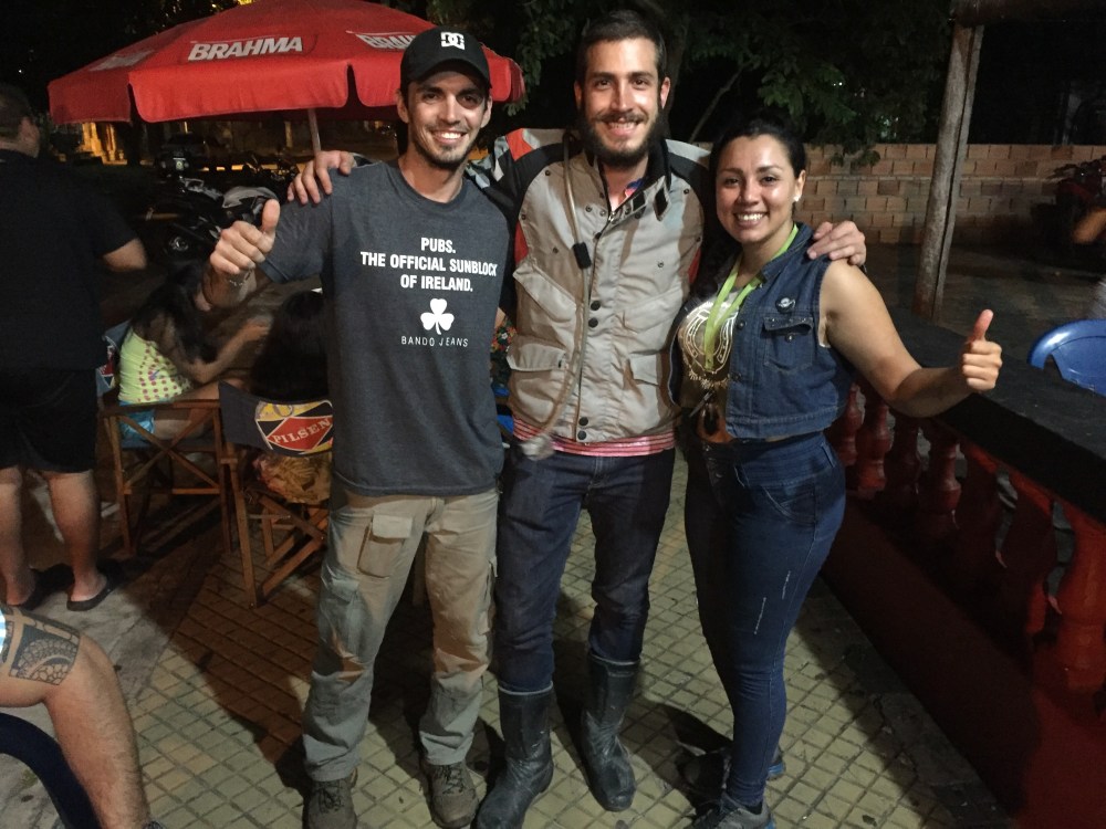 Acá en la foto con Jorge Cataldo y su esposa. Jorge es el presidente de Riders y hace aproximadamente dos años empezó a expandirlo por Suramérica y Centroamérica. Tienen un sistema para ayudar a los viajeros que funciona muy bien; a través de la aplicación Telegram, meten al viajero por el país que esté rodando, le dan consejos, lo ayudan, etc., al salir del país, se sale del grupo y entra al del siguiente país… Así sucesivamente hasta que regresa a su país de origen y queda en el grupo de ahí, para ayudar a los próximos viajeros que pasen por su país (yo que soy de Colombia, cuando llegue a mi país, entro al grupo y le ayudó a los que pasen por ahí…).