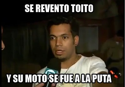 2. Cuando la moto empezaba a rebotar mucho, me tocaba ponerme de pie (para no salir volando, así como el «tramboliko» -ver vídeo más abajo) y frenar con el delantero para que el peso se pasara para el frente y tratar de equilibrar… Un «tolmento»… Mierda de sensación, me vi estrellado como tres veces, en los momentos en los que la parte de atrás de la moto parecía concierto de reggaeton… Puro perreo y sandungueo…