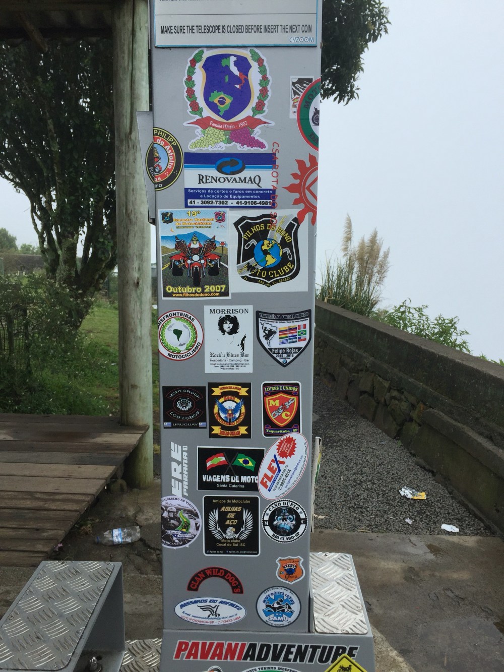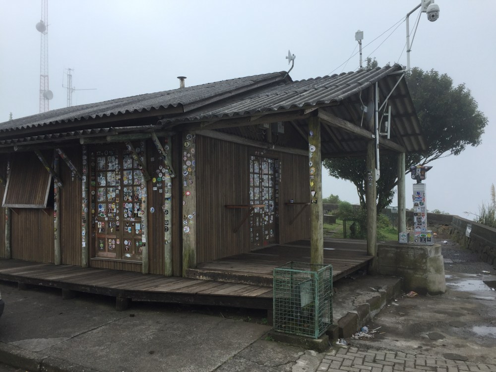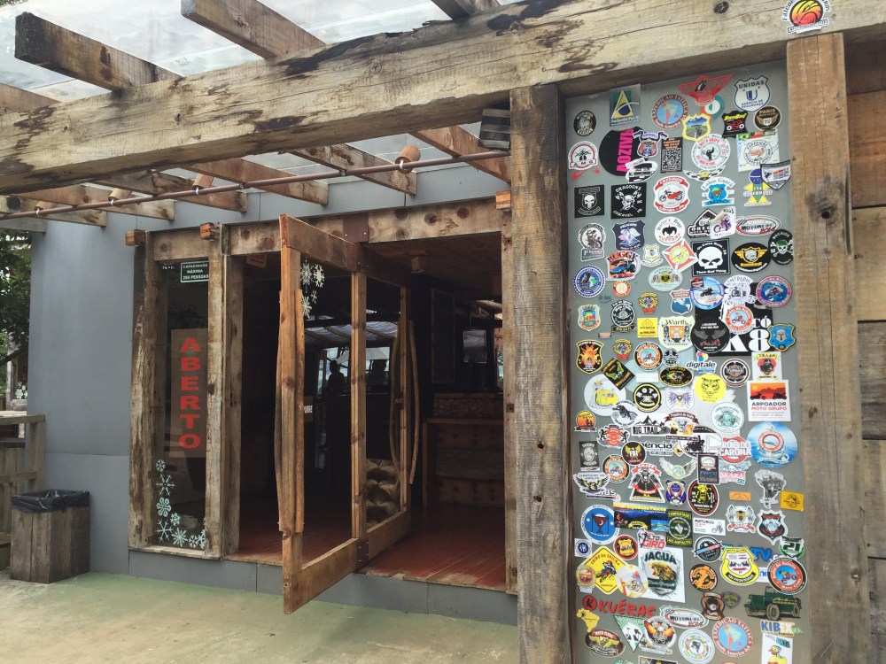 Fulleo la moto con «gasolina aditivada» y a hacer la famosa ruta brasileña de Serra do Rio do Rastro. Antes de llegar, pasé a una tiene de souvenirs para comprar la calcomanía de la ruta. La tienda se llama Snow Valley, otro lugar para pegar mi calcomanía.