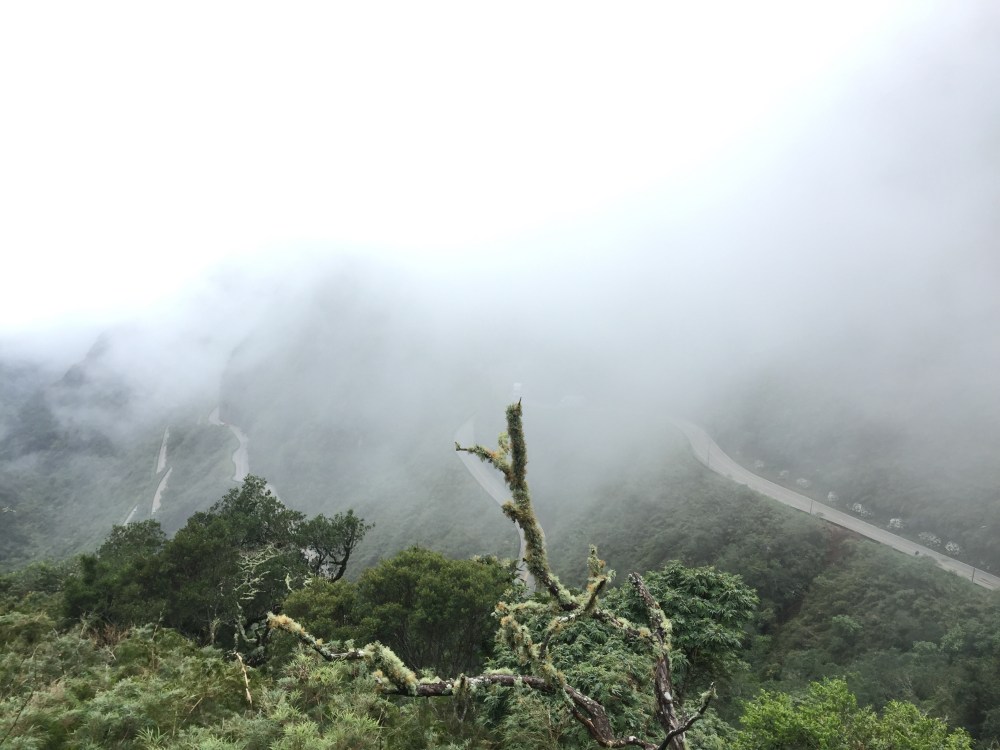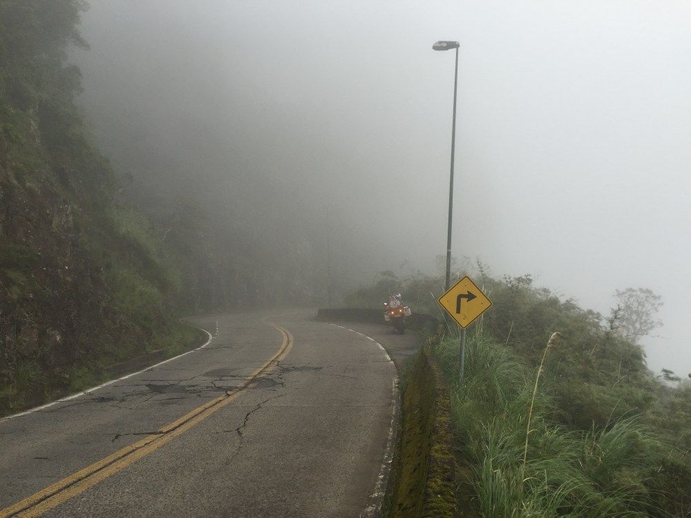Al llegar donde empieza la ruta, estaba completamente nublada… Me metí a un hotel, a esperar a que bajara. Una hora después y nada, sólo un poco… Toca aprovechar…