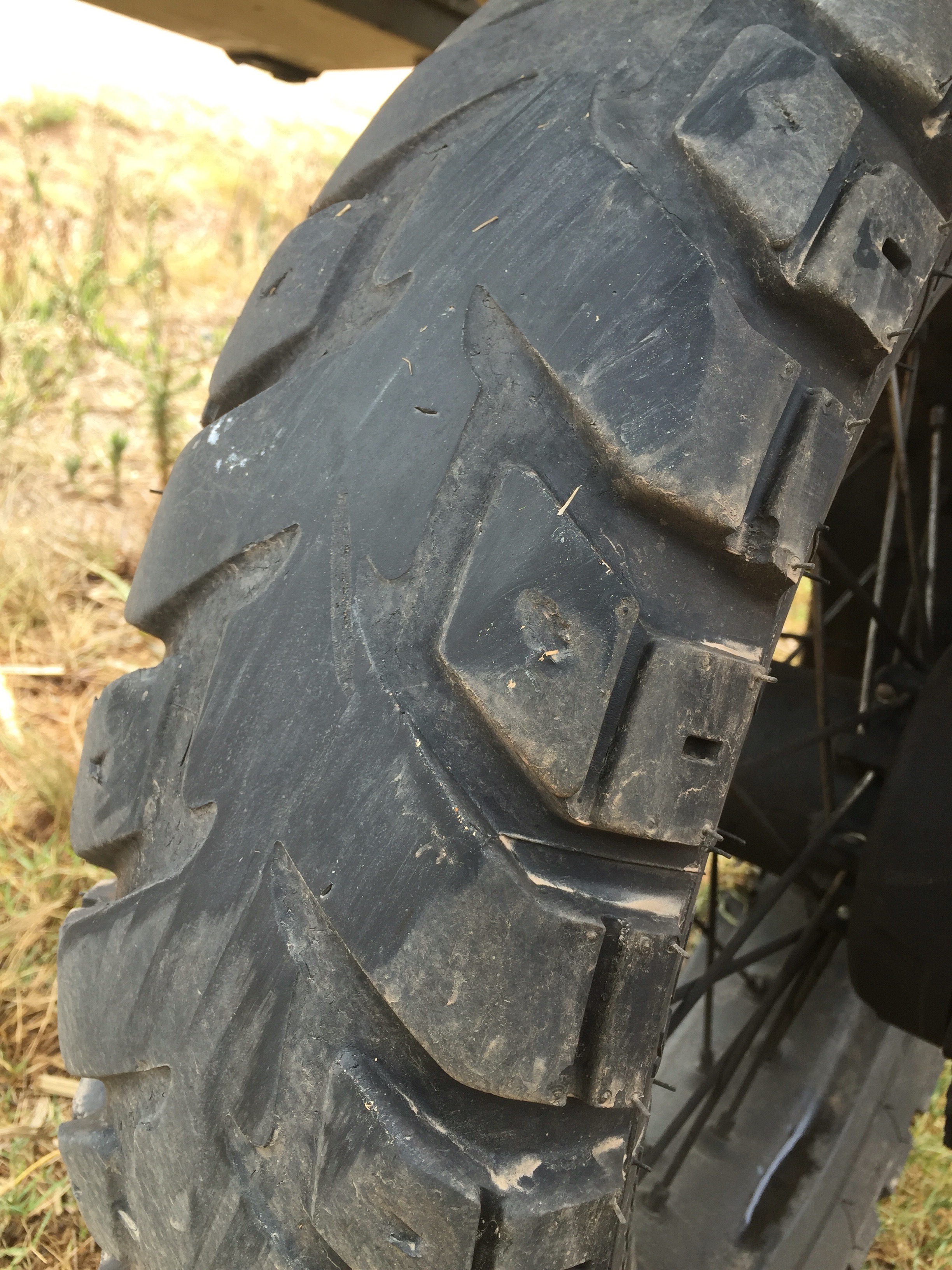 Guayabo (resaca) leve, mucha lluvia toda la madrugada y en la mañana. Creo que es hora de irme… Cuando estaba subiendo el softbag a la moto, noté que la llanta ya estaba casi muerta… Cuando llegue a Punta del Este miro qué hago… Están cuadradas de tanta recta…