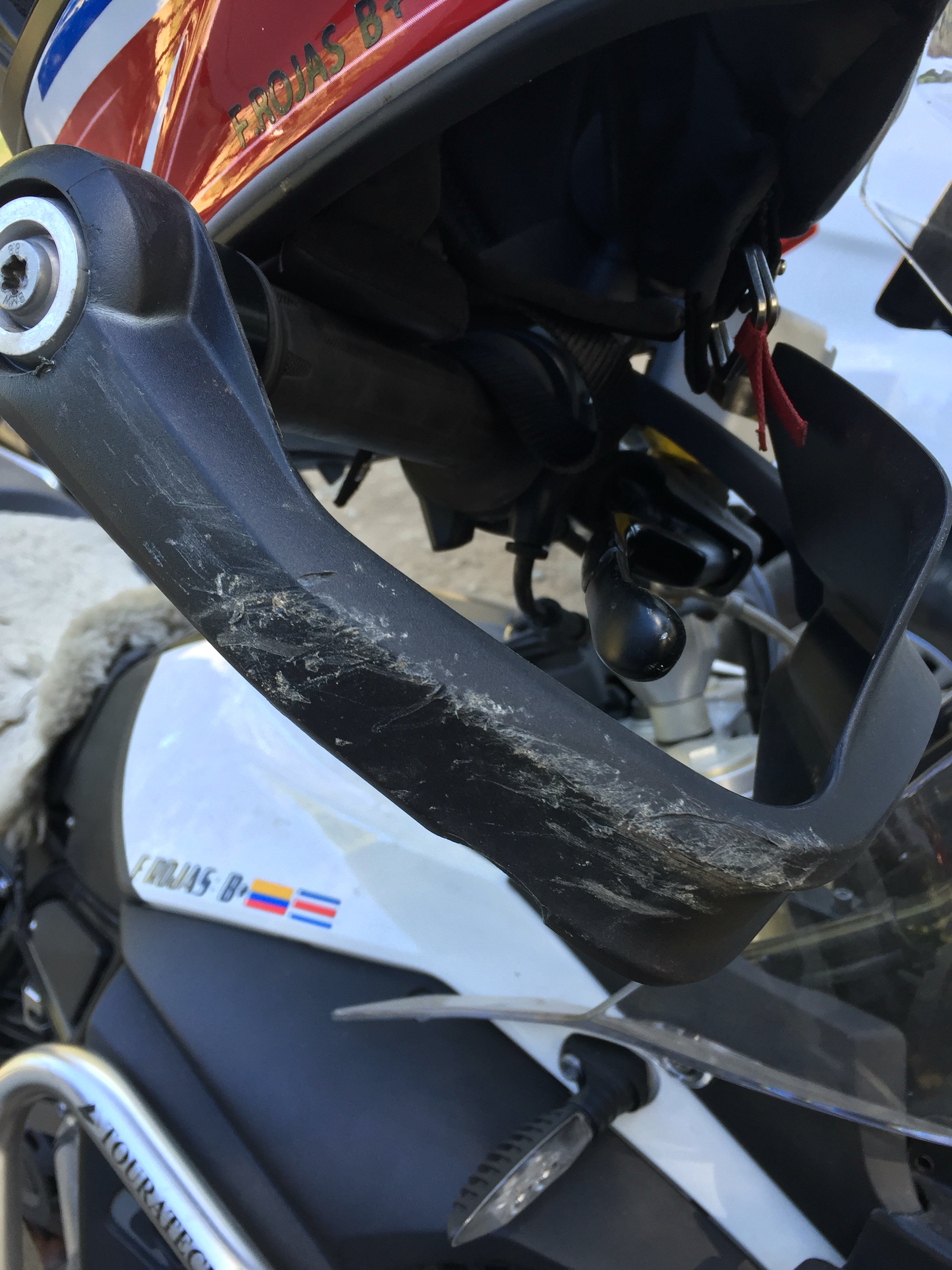 La moto afortunadamente cayó del mismo lado que cuando me la tumbó el policía en Perú.