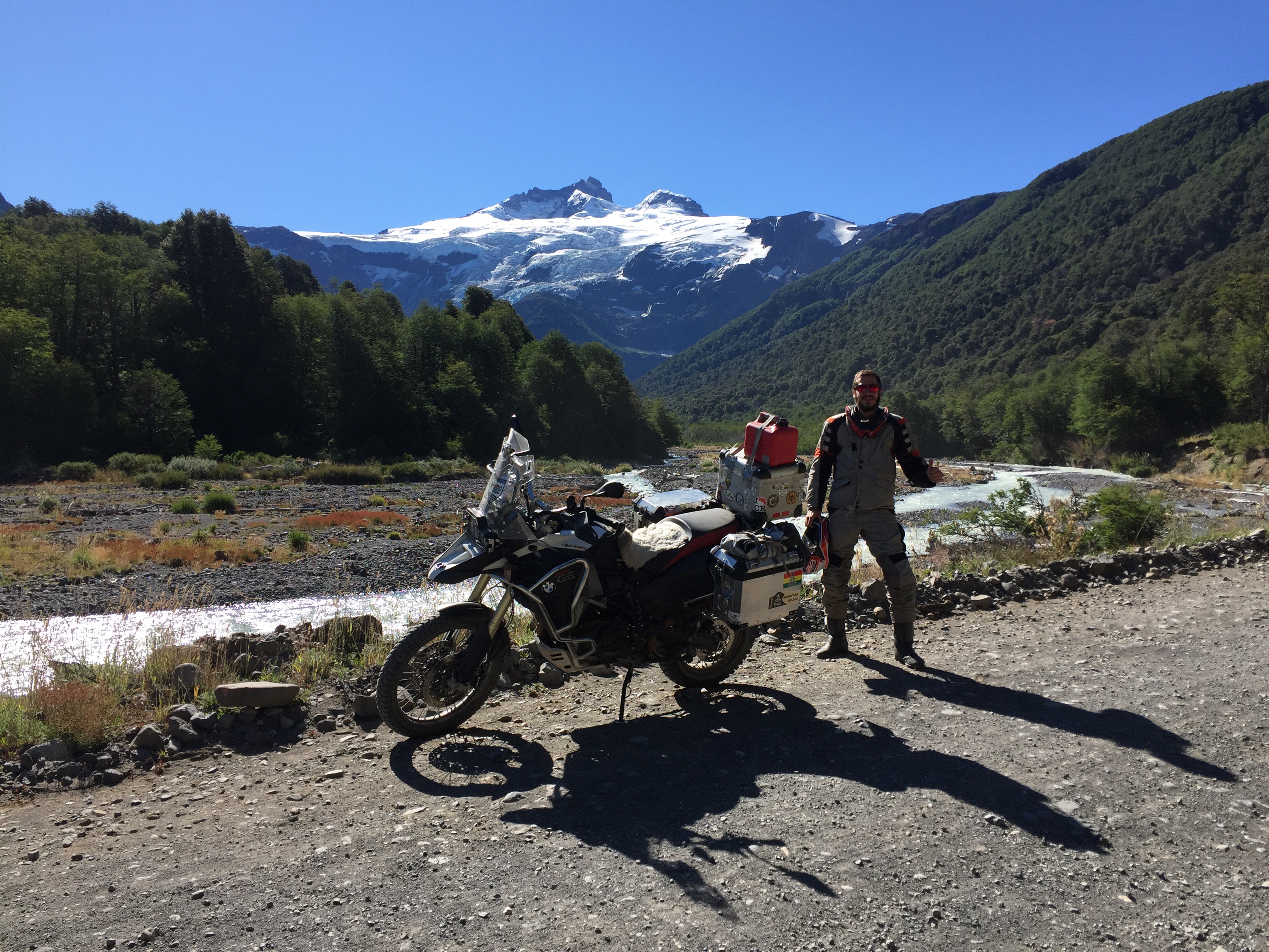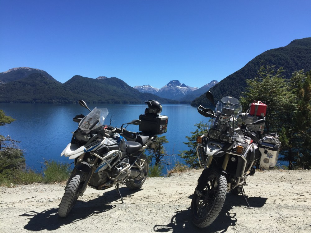 Salimos a las 11:00 a.m. y echamos gasolina en la YPF cerca al hostal. Para ir a Cerro Tronador (glaciar y volcán), toca coger la Ruta 40, pasando por Lago Gutiérrez y por el Mascardi, hasta llegar al desvío por la ruta 82 (que es trocha). Son aproximadamente 60 km de off para llegar hasta Ventisquero Negro, pasando por el otro lado del Lago Mascardi y la isla corazón.
