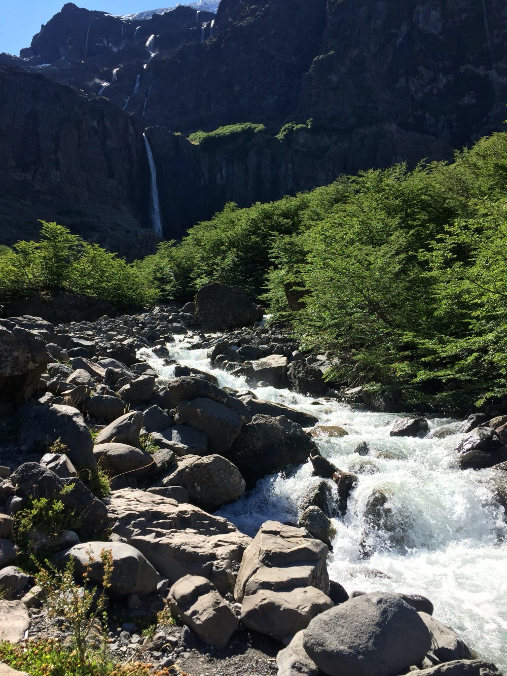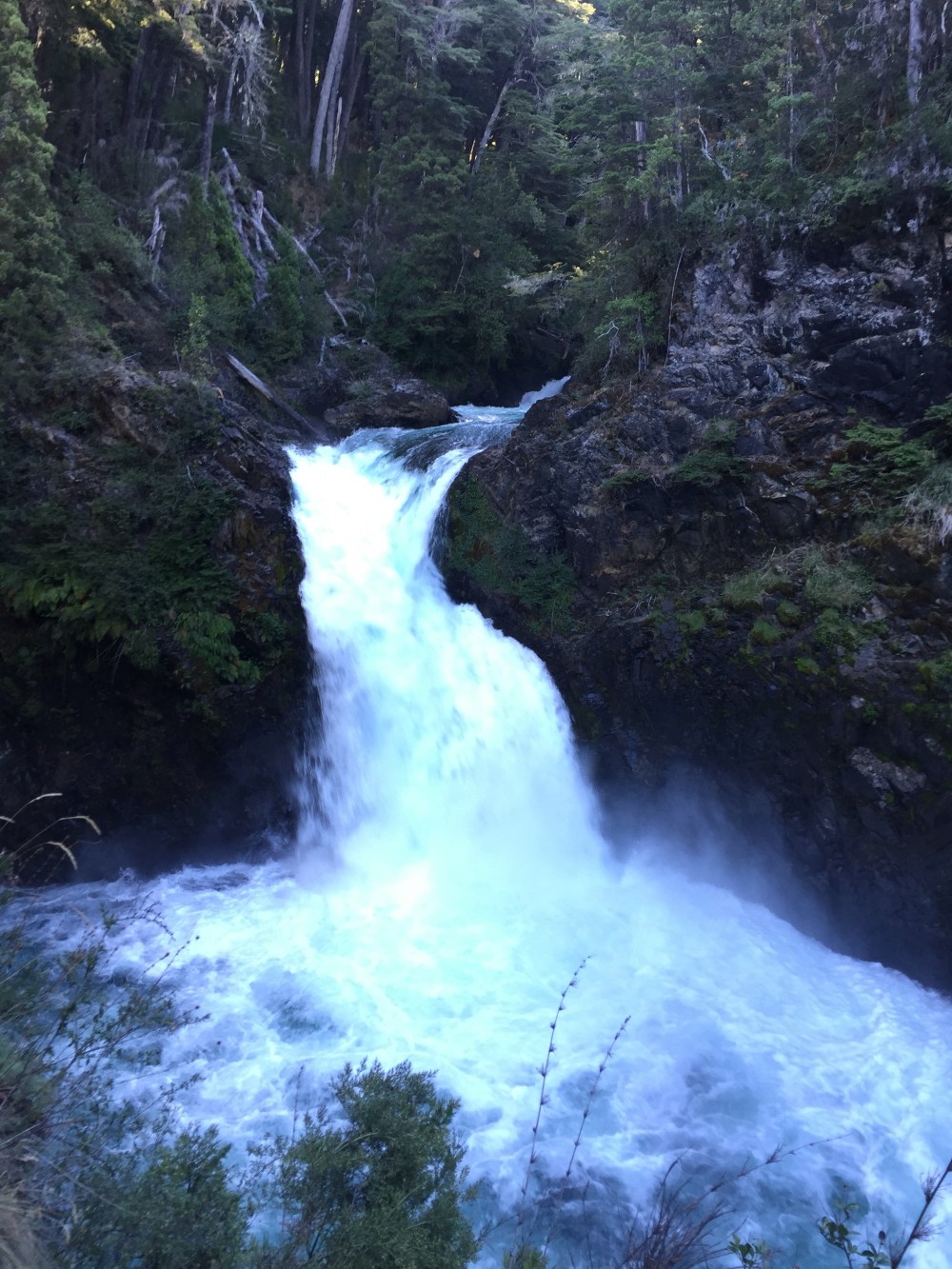En Ventisquero Negro esperamos un rato hasta que se desprendiera una parte del glaciar y escucharlo «tronar». Nos tocó un pedazo pequeño, pero aún así pudimos escucharlo (aunque no creo que tenga comparación con el Glaciar Perito Moreno al que iremos la otra semana). De ahí fuimos a ver la Garganta del Diablo (que es como la sexta a la que voy y tiene ese nombre… Todo se llama así…) que es un km más arriba del mirador del glaciar. De ahí, toca caminar otro km para llegar a algo que no es nada del otro mundo.