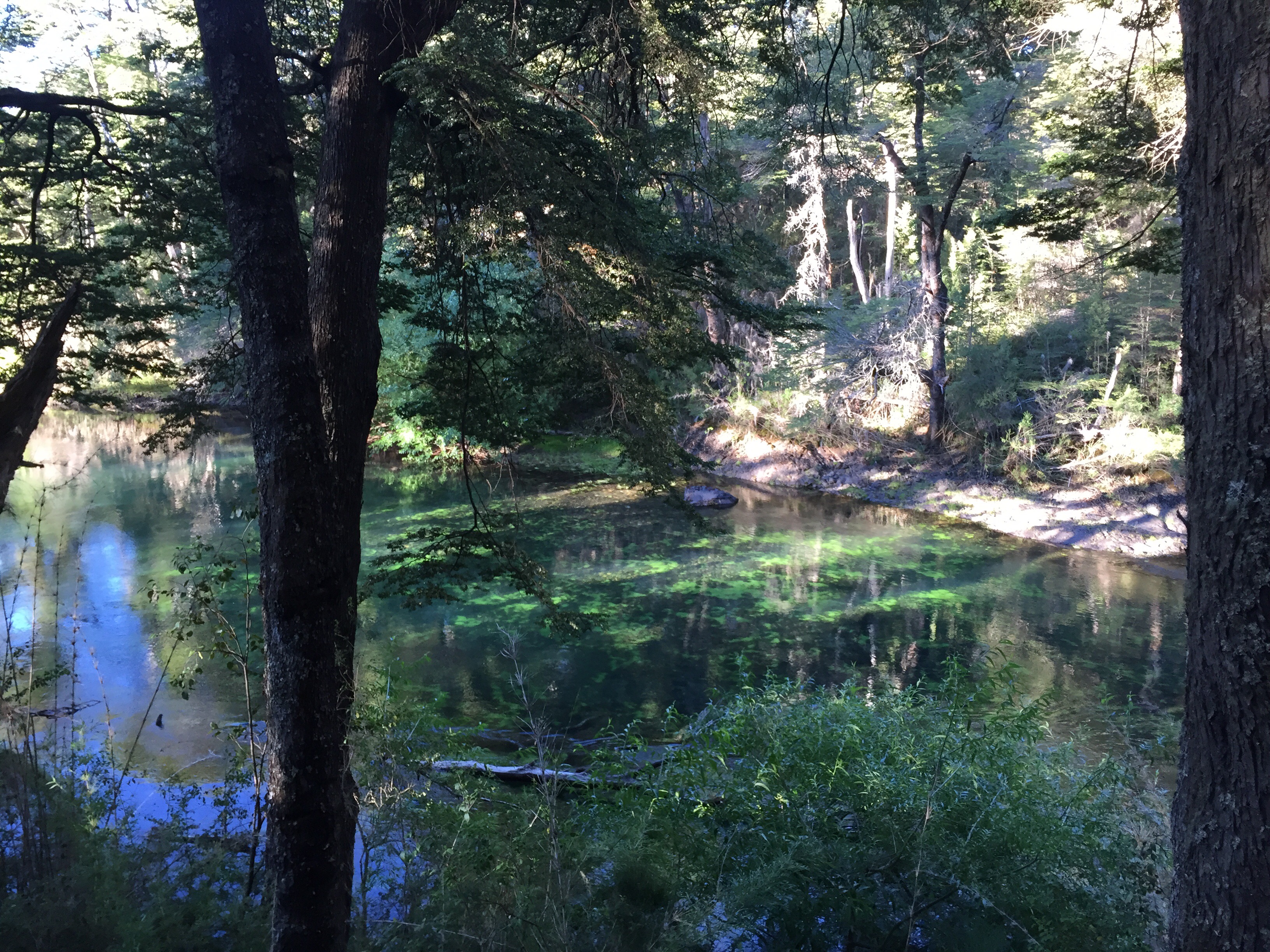 Esa parte del río es muy bonita, parece que fuera radioactivo por el color de las algas. La cascada también es muy bonita.