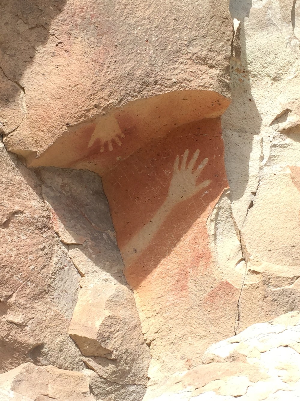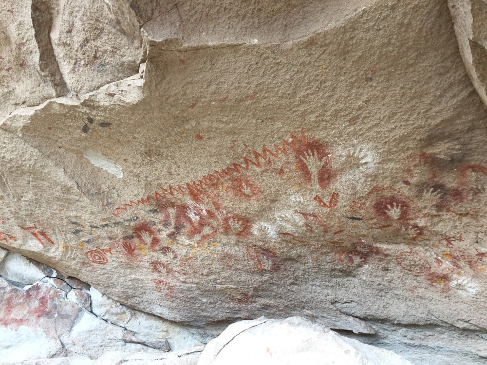 Utilizaban pigmentos minerales mezclados con sangre, orina o grasa animal, obtenían una pasta que después se metían en la boca y soplaban sobre las manos. Estas pinturas rupestres se hicieron alrededor del año 7,350 a. C.