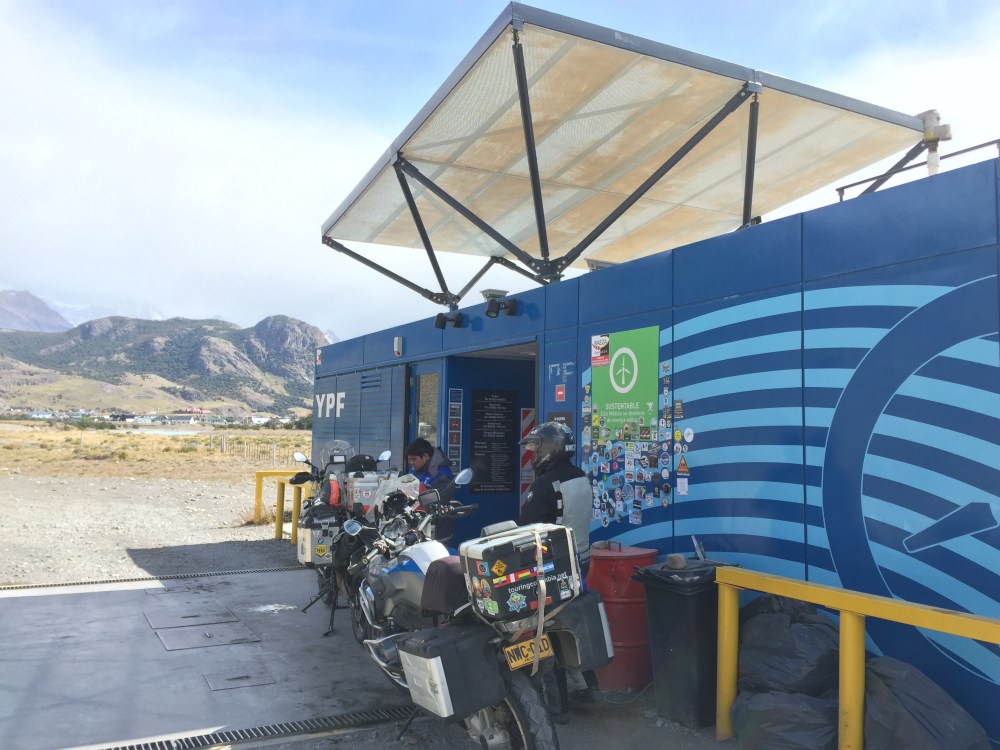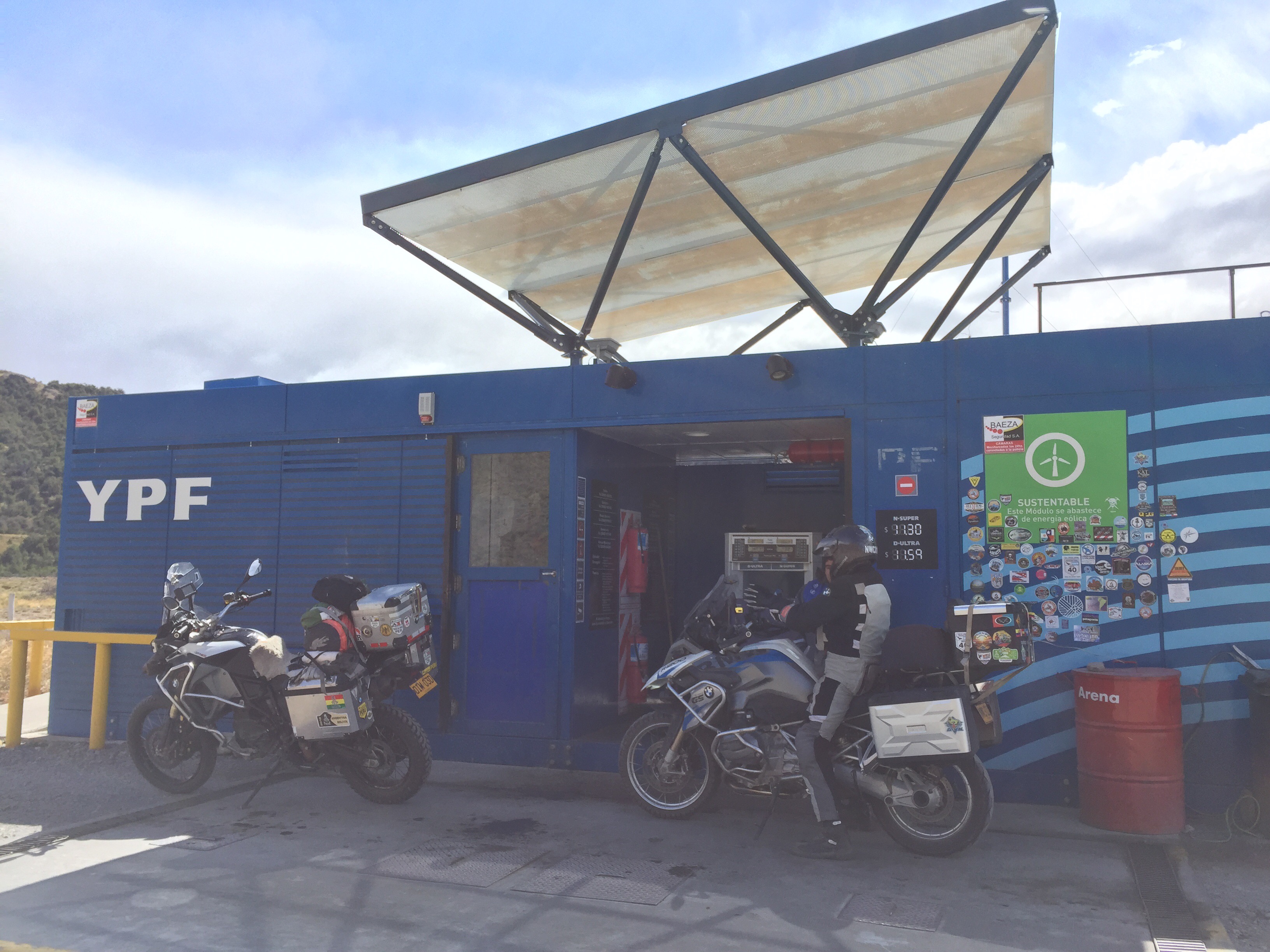Fuimos a echar gasolina en la YPF, que acá es en un contenedor.