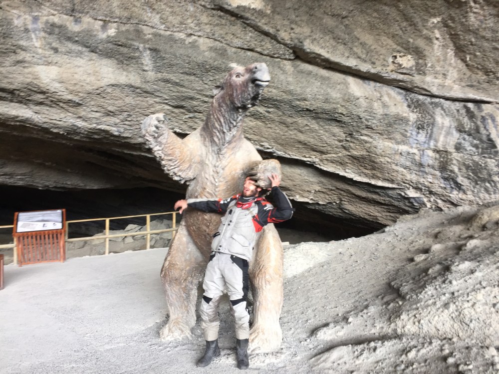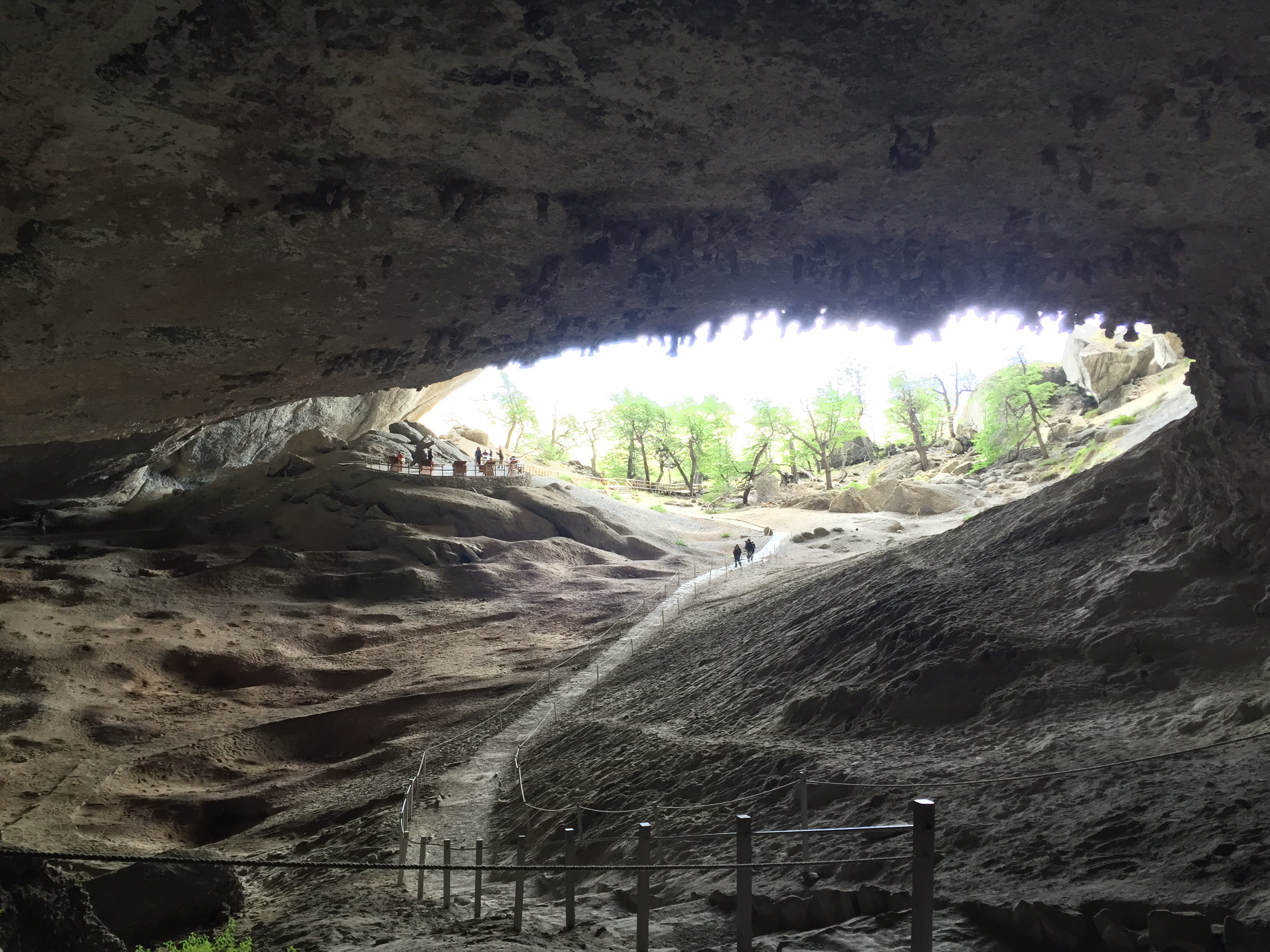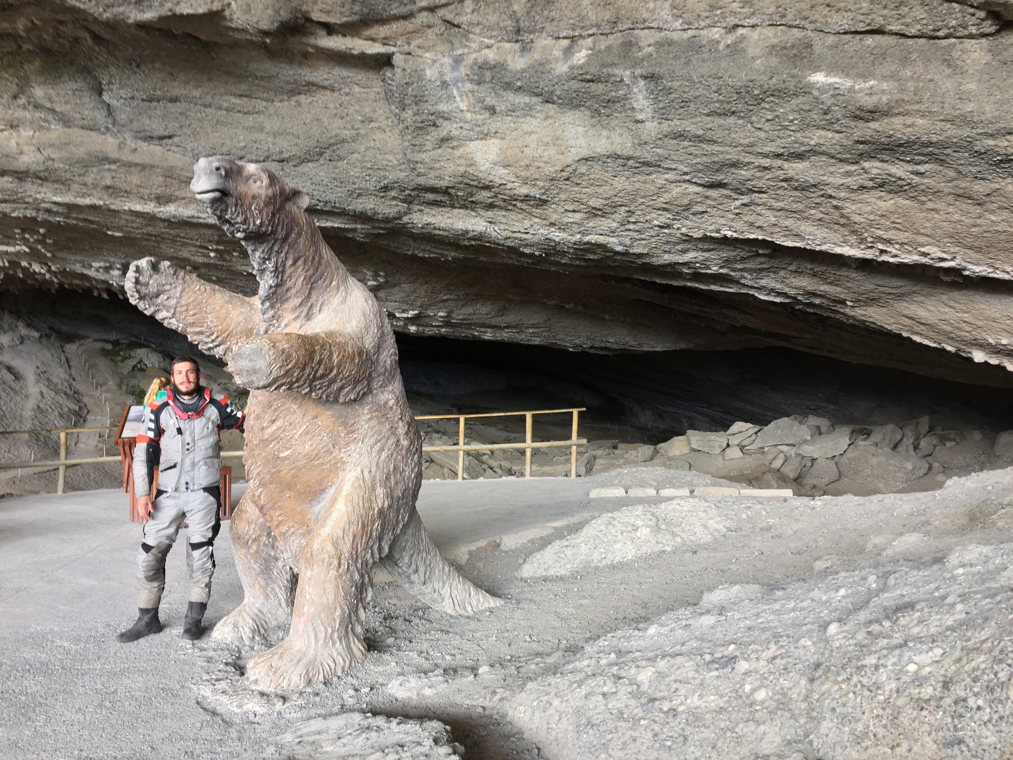 Decidimos irnos por la ruta de la cueva del Milodón, toca coger la ruta 9 al norte como 25 km y de ahí se dobla a la izquierda en la Y-150 que está pavimentada hasta la entrada a la cueva (como unos 10 km). Les voy a decir de una vez, que no boten corriente… No vale la pena entrar… Nosotros dizque paisas y tirándonosla de avispados, no caímos en cuenta que decía cueva, mas no fósil del Milodón… Es una caminada breve a ver dónde vivía ese man que se extinguió hace miles de años… Pero para ir a ver una cueva sin gracia, no vale la pena perder tiempo ni plata.