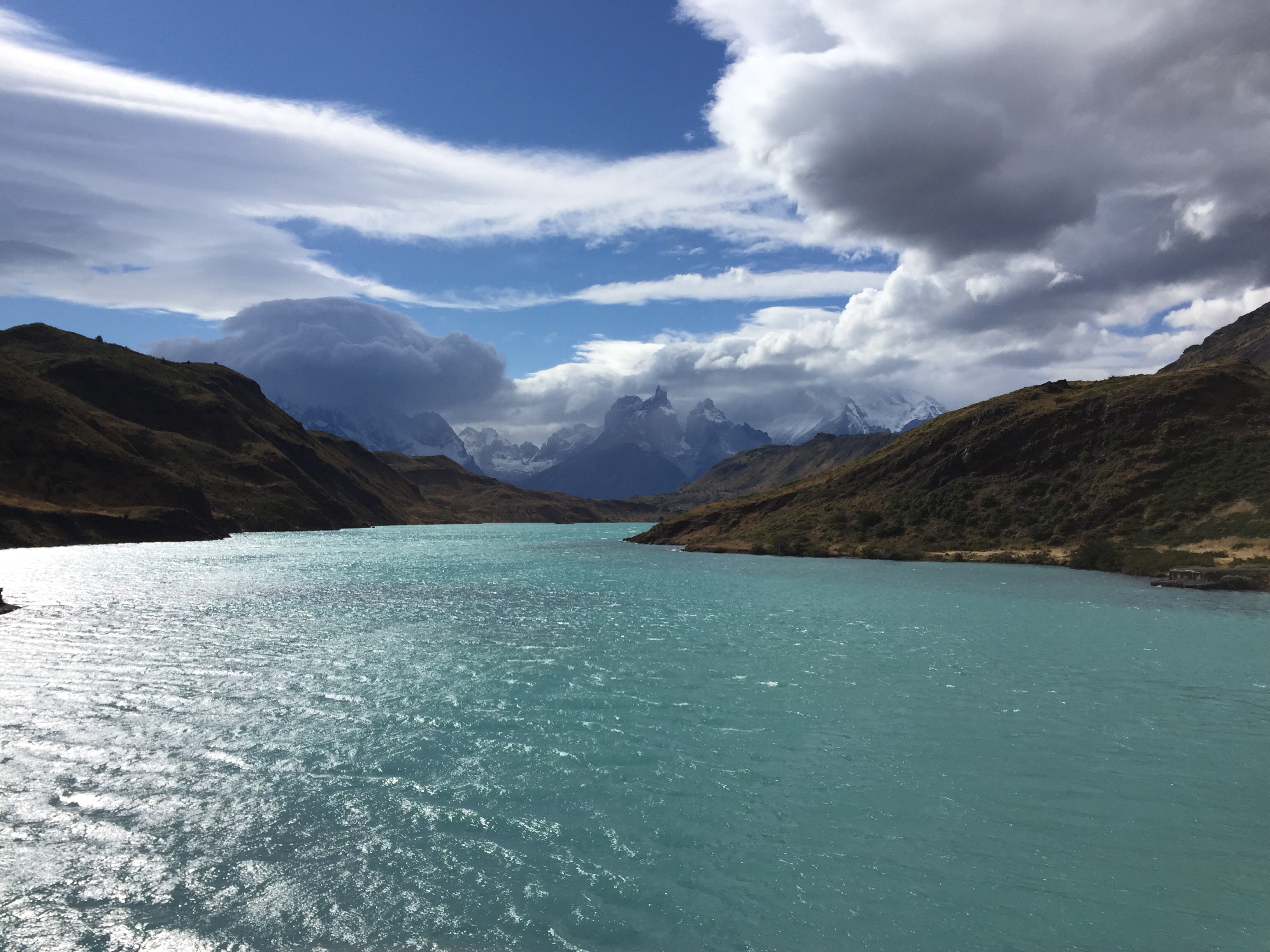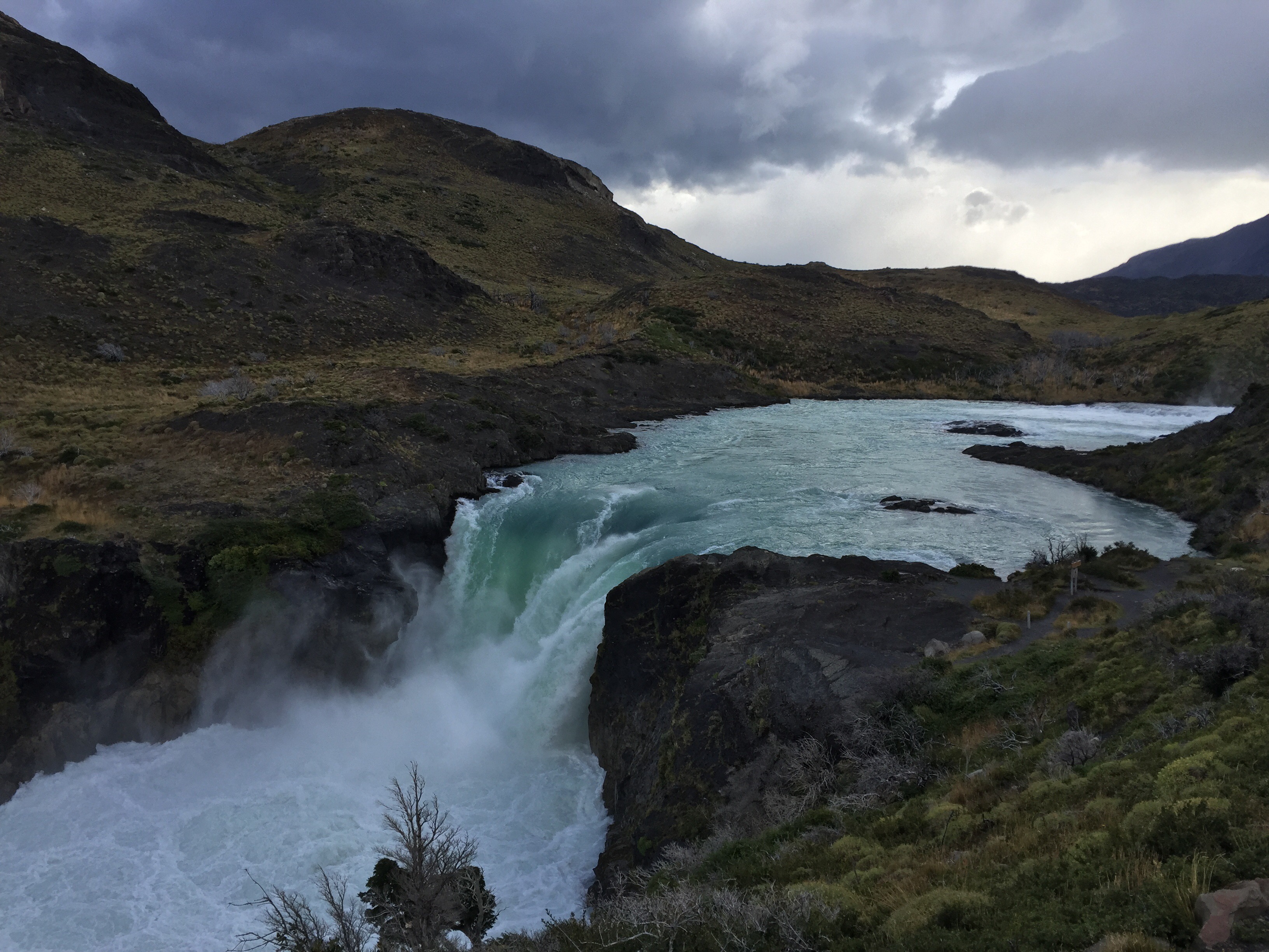 Cuando llegamos al Salto Grande, no era la mayor cosa (claro que después de las Cataratas de Iguazú, nada me va a sorprender). Vimos los Cuernos del Paine justo antes de que empezara a lloviznar y se tapara por el resto del día (ya eran las 5:00 p.m.). Queríamos ver las Torres del Paine, pero el clima no nos lo permitió, eso que durante el día estuvo despejado y casualmente también fue uno de los pocos de la semana en los que no llovió hasta tarde. La verdad es que tuvimos mucha suerte en El Chaltén, El Calafate y Torres del Paine.