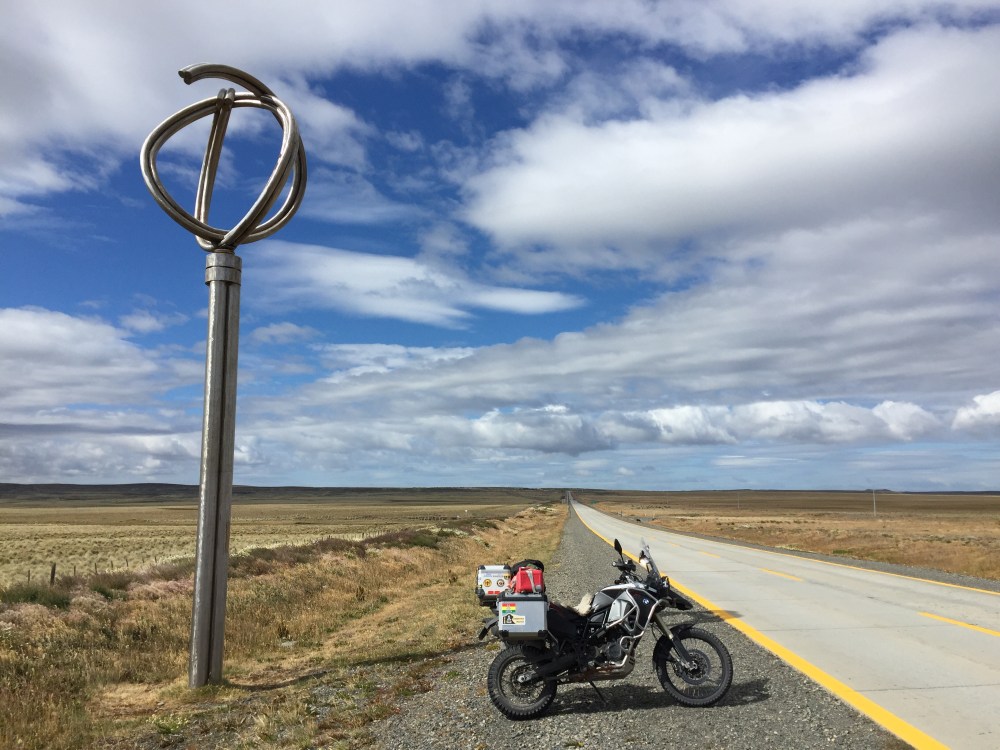 Saliendo de Natales, la vía estaba escarchada (la noche anterior llovió mucho, siquiera que no seguimos para Punta Arenas) y la capa de agua que quedaba, se había congelado. Nos tocó irnos por la línea que dejan las llantas de los carros cuando pasan, ya que esta no estaba congelada, pero sí mojada, por lo que no pasamos de 100 km/h.