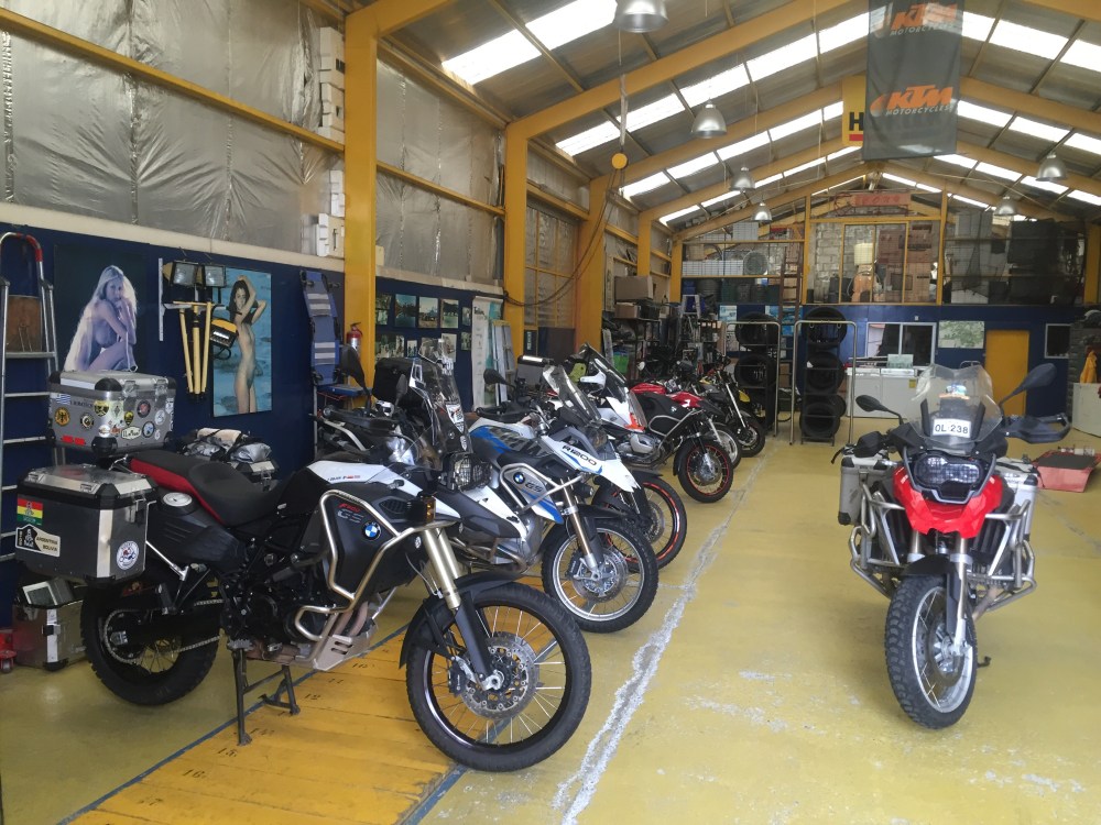Fuimos a recoger las motos y todo al pelo, Alejandro me arregló hasta la maleta lateral que dañé en Perú (no estaba entrando bien en el herraje y sonaba mucho). Nos lavo las motos y les limpió los filtros de aire.