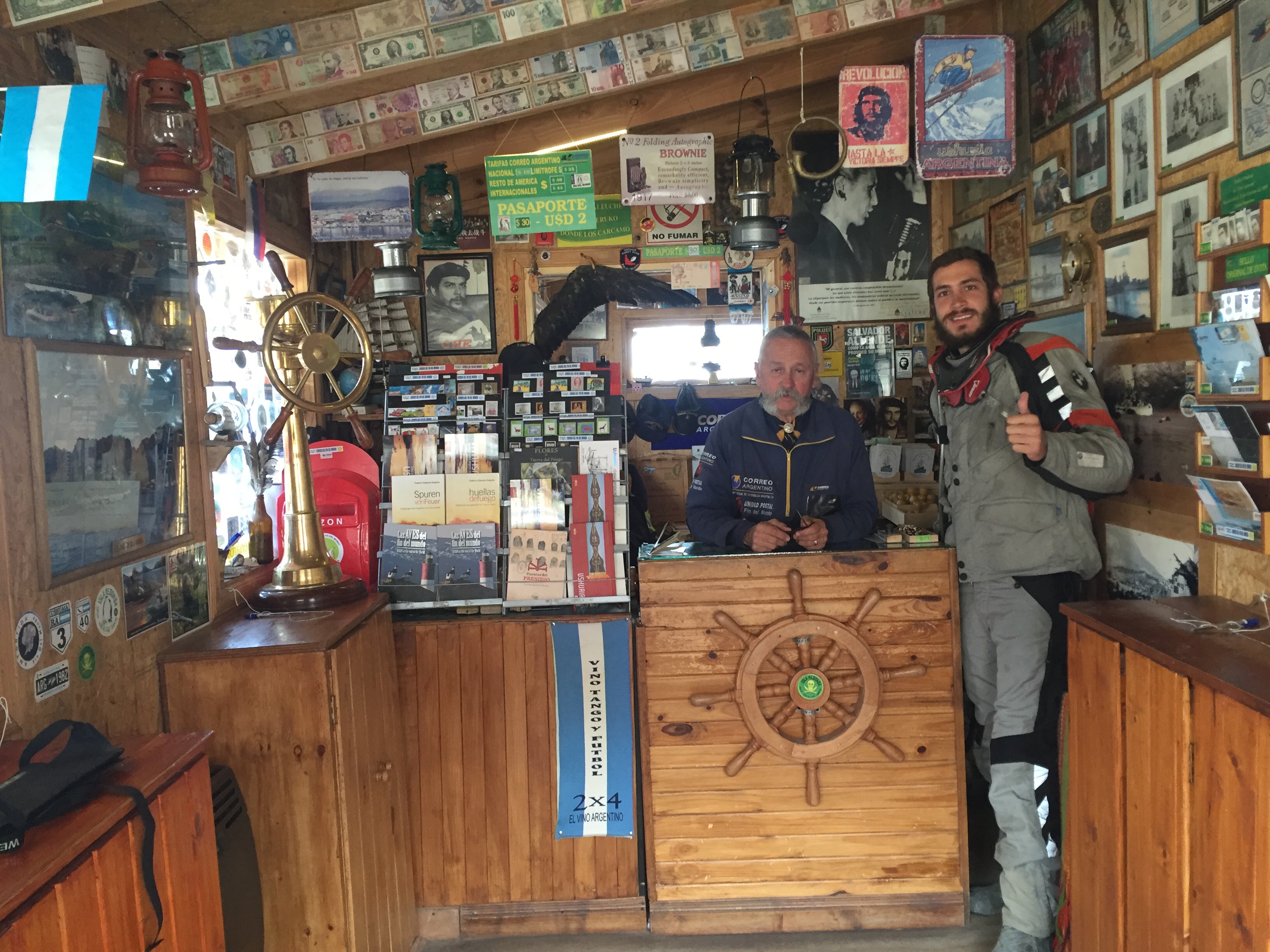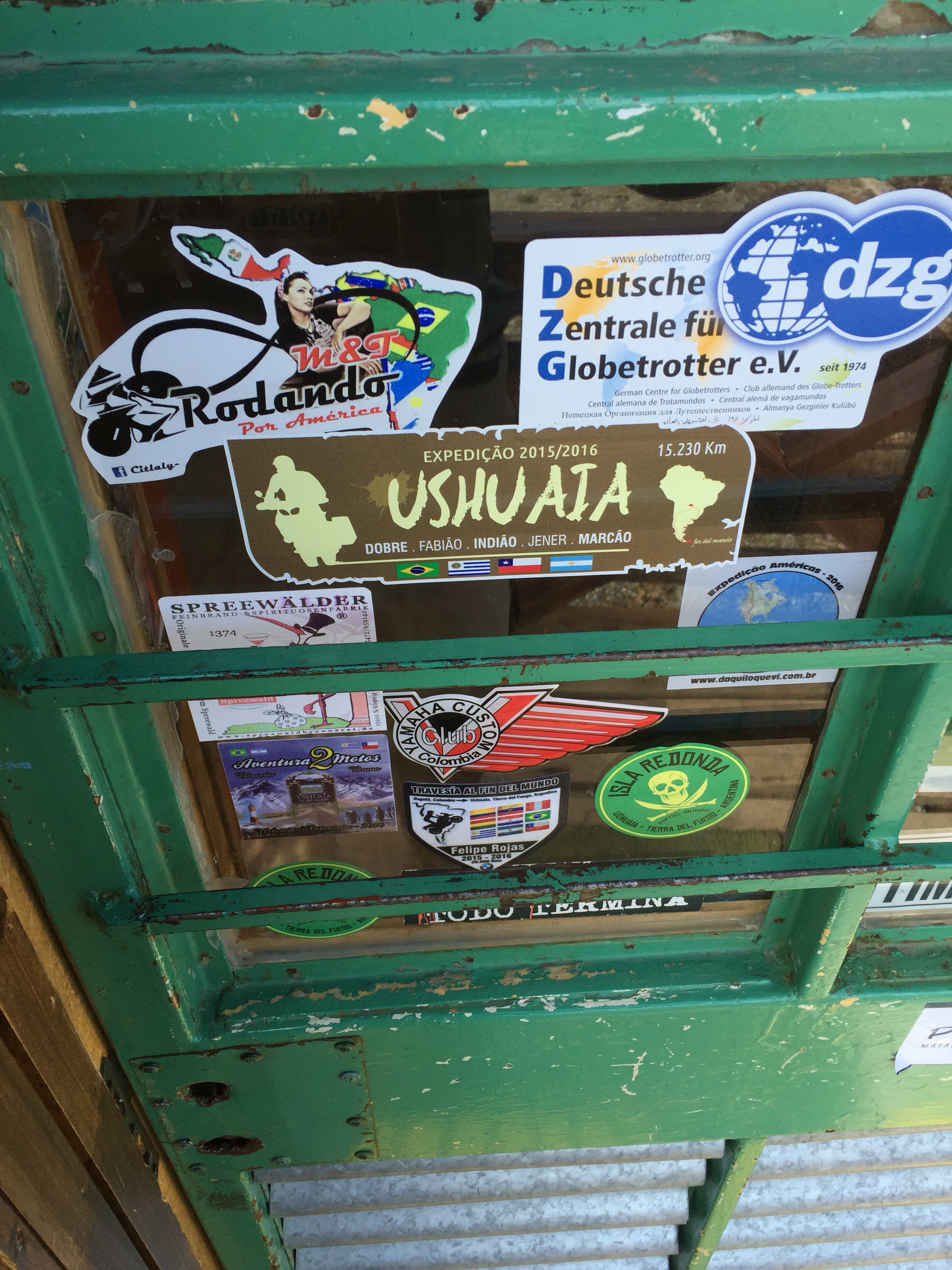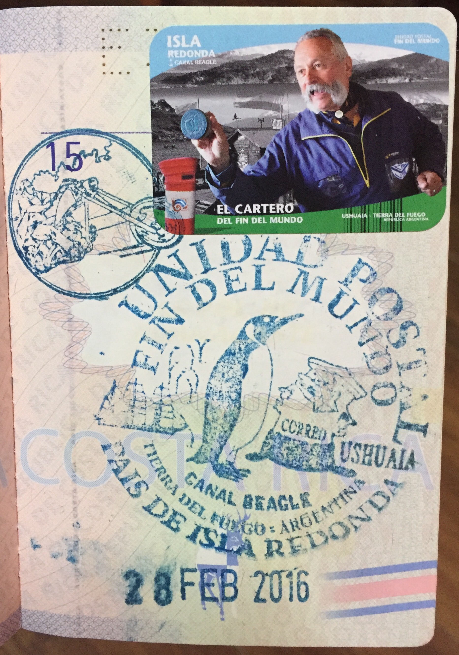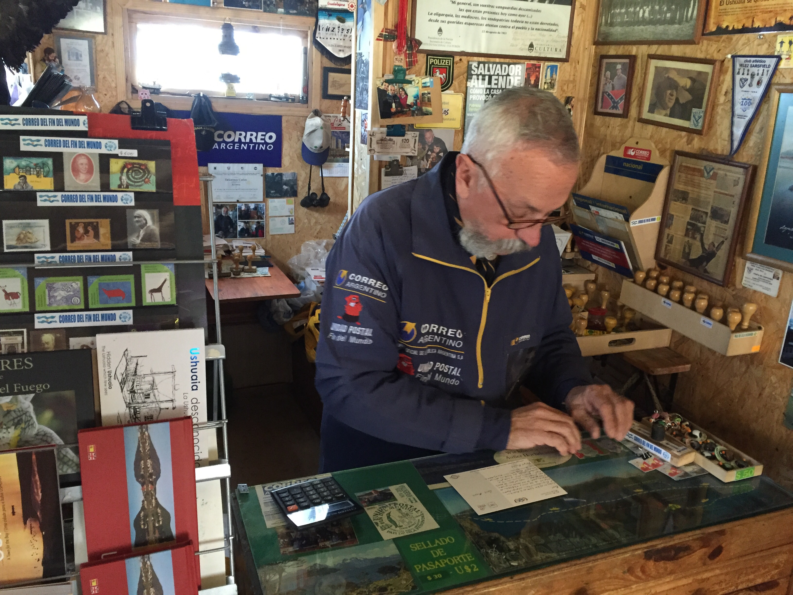 Cuando vengan, tienen que pasar por Ensenada Zaratiegui, en donde está el cartero del fin del mundo. Ahí el man les sella el pasaporte y uno puede ver todos los mensajes que la gente le ha dejado en billetes, cartas, postales, etc. Pegué mi calcomanía y le dejé un regalo a José Osorio que llega la otra semana y a Daniel Valencia (que no sé cuándo llegue porque está en el norte de Chile).