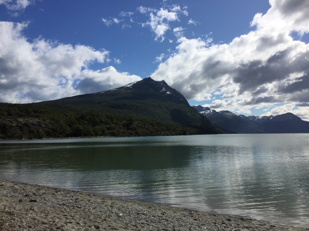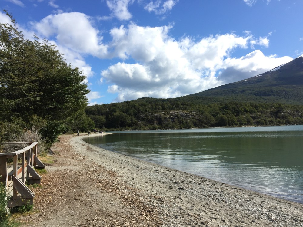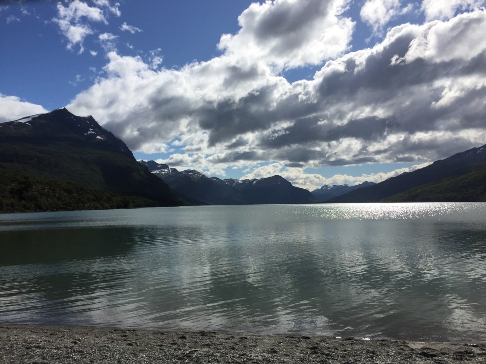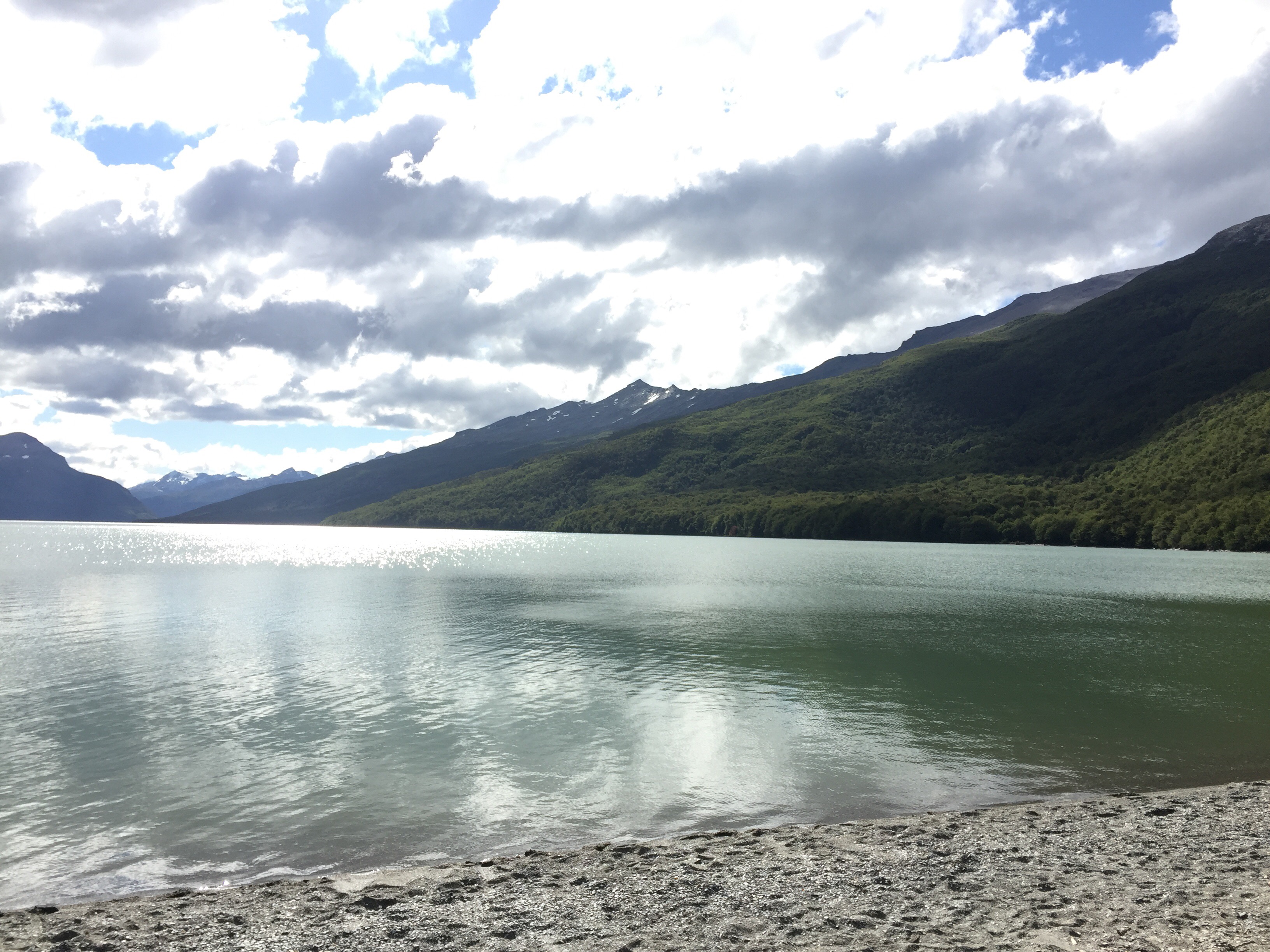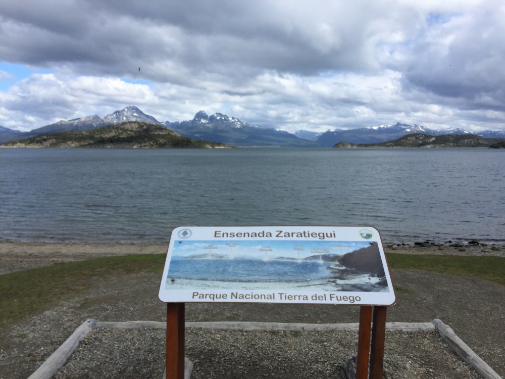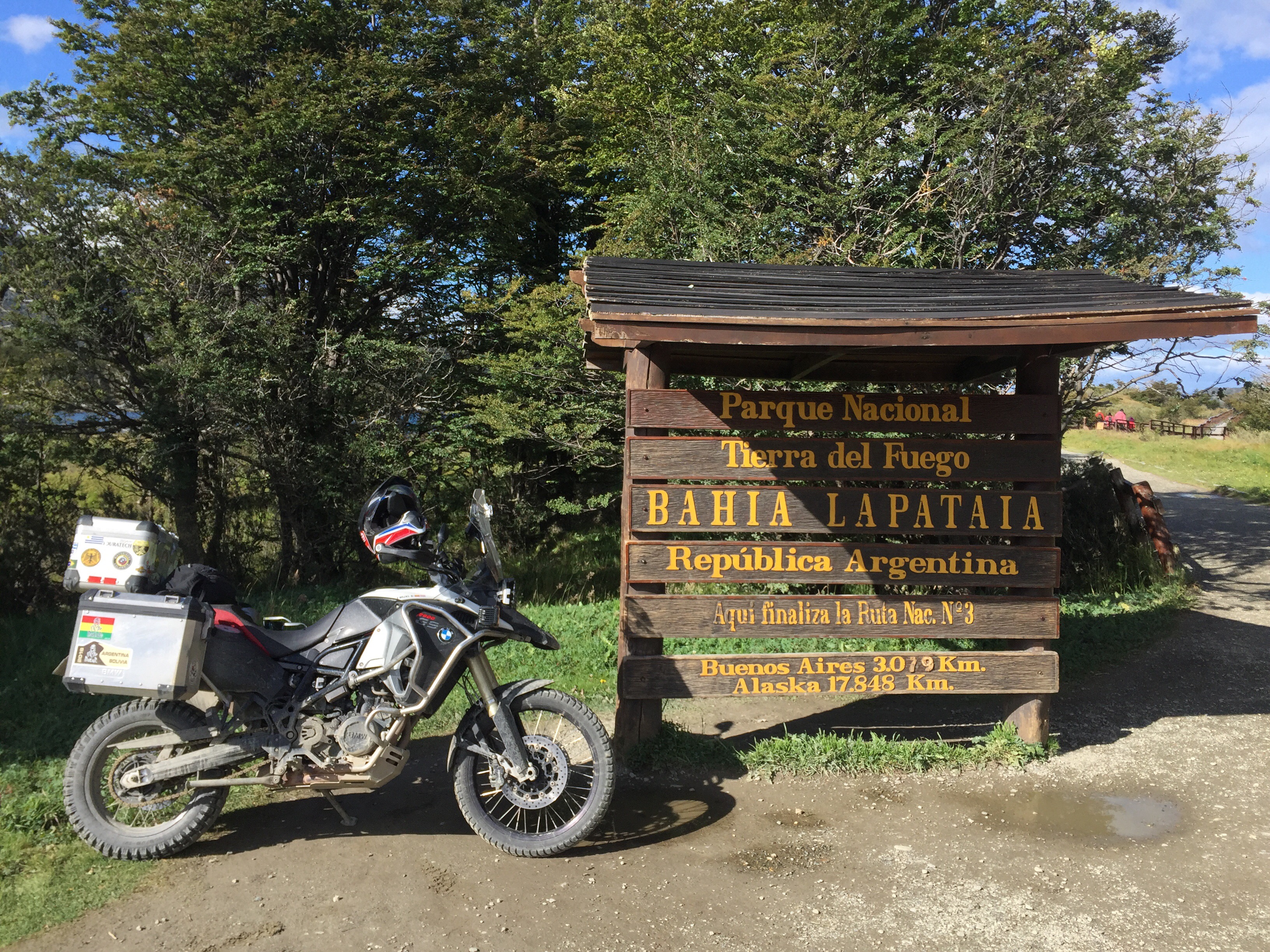 Nos fuimos para el Lago Roca, pero ni nos bajamos porque es más de lo que hemos visto desde Bariloche (lago claro con montañas y bosque…), entonces ahora sí, al fin de la ruta… A Bahía Lapataia, claramente tocaban las fotos con la moto: