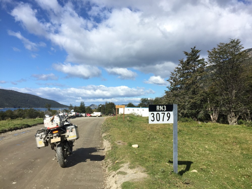 Acá el letrero del km 3,079 (último de la ruta y donde no se puede ir más al sur por carretera).