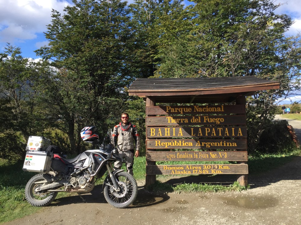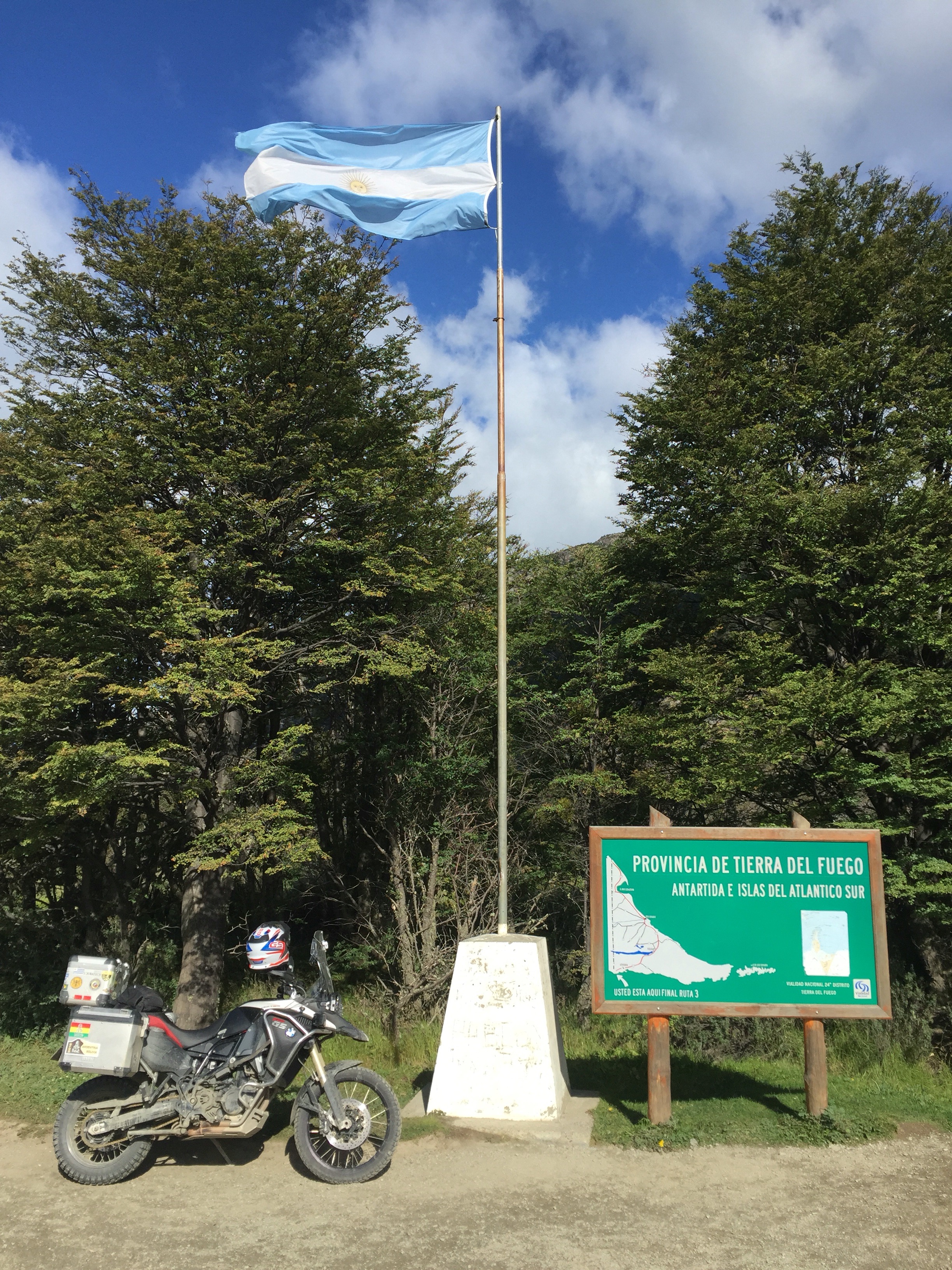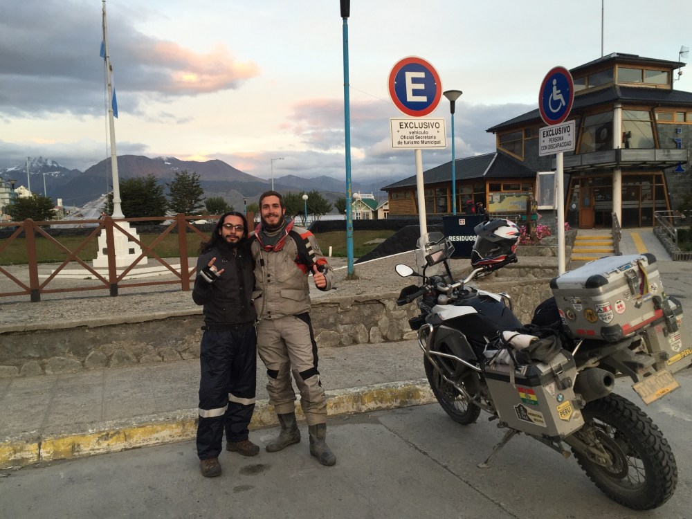 Después de un merecido descanso, salimos hacia Lapataia a medio día. Antes de salir, le había dicho a Jady que me iba a meter al mar, porque uno venir hasta la mierda y no seguir un poquito más que los otros moteros, no aguanta… Al parcero le sonó la idea y se animó también, entonces veníamos sin liner, con la pantaloneta debajo del pantalón de la moto, trajimos chaquetas guantes, gorro, toalla, etc., todo para cuando saliéramos del mar.