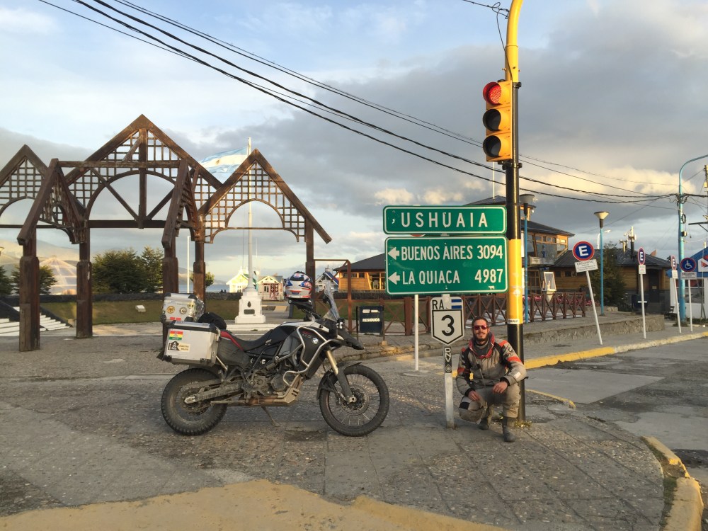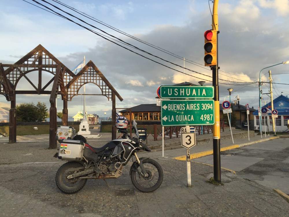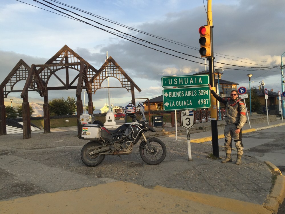 Nos fuimos a tomar la foto con el letrero víal de Ushuaia, en donde sale La Quiaca (frontera Argentina-Bolivia y por donde entré por primera vez a este país. En el post de ese día verán el letrero que dice Ushuaia a más de cinco mil km, ahora lo estoy viendo desde la otra punta).
