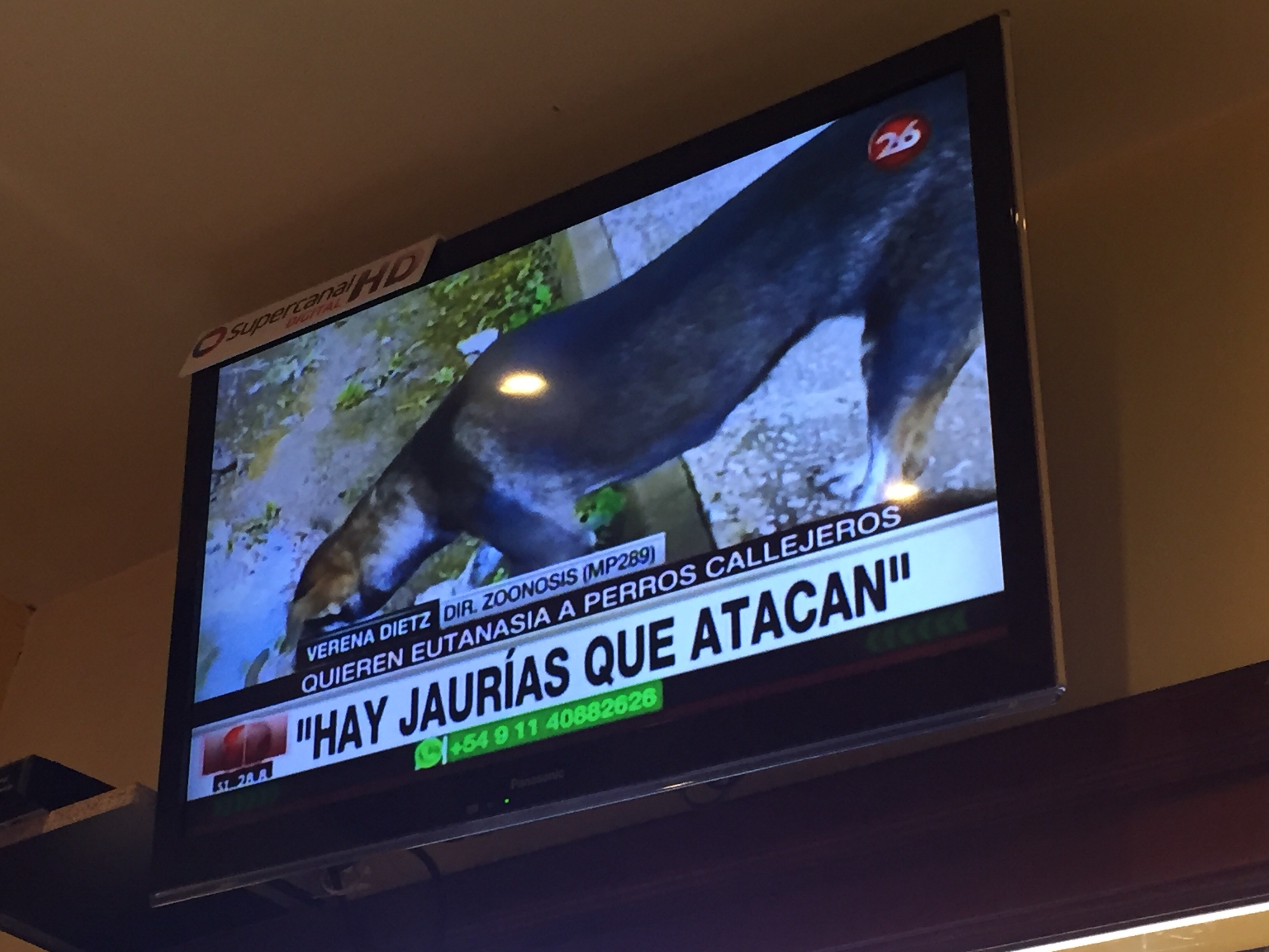 Mientras almorzabamos, vimos una noticia de los perros, que se hacen en combo a ladrarle a los carros y motos, acá eso es un tema complicado, porque la gente no hace nada… Yo sí les voleo para cuando se acercan a tratar de morderme las botas… Así no se acercan mucho…