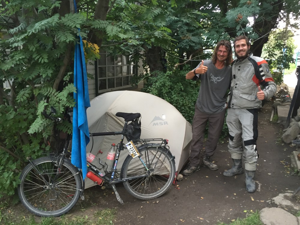 Señores, a darle gas a esas motos… Uno en el viaje conoce gente que viene mucho mejor que uno (puro hotel, con carro de apoyo, teléfono satelital, etc.) y gente que viene guerreandola como la mexicana que llegó hasta acá en superbike y salió de México con 10 dólares o este japonés que me acabo de encontrar… Aprovechen que son «bendecidos y afortunados»y saquen esas motos del país, ¡que se vean esas placas amarillas y colombianas por todo el mundo, ome!