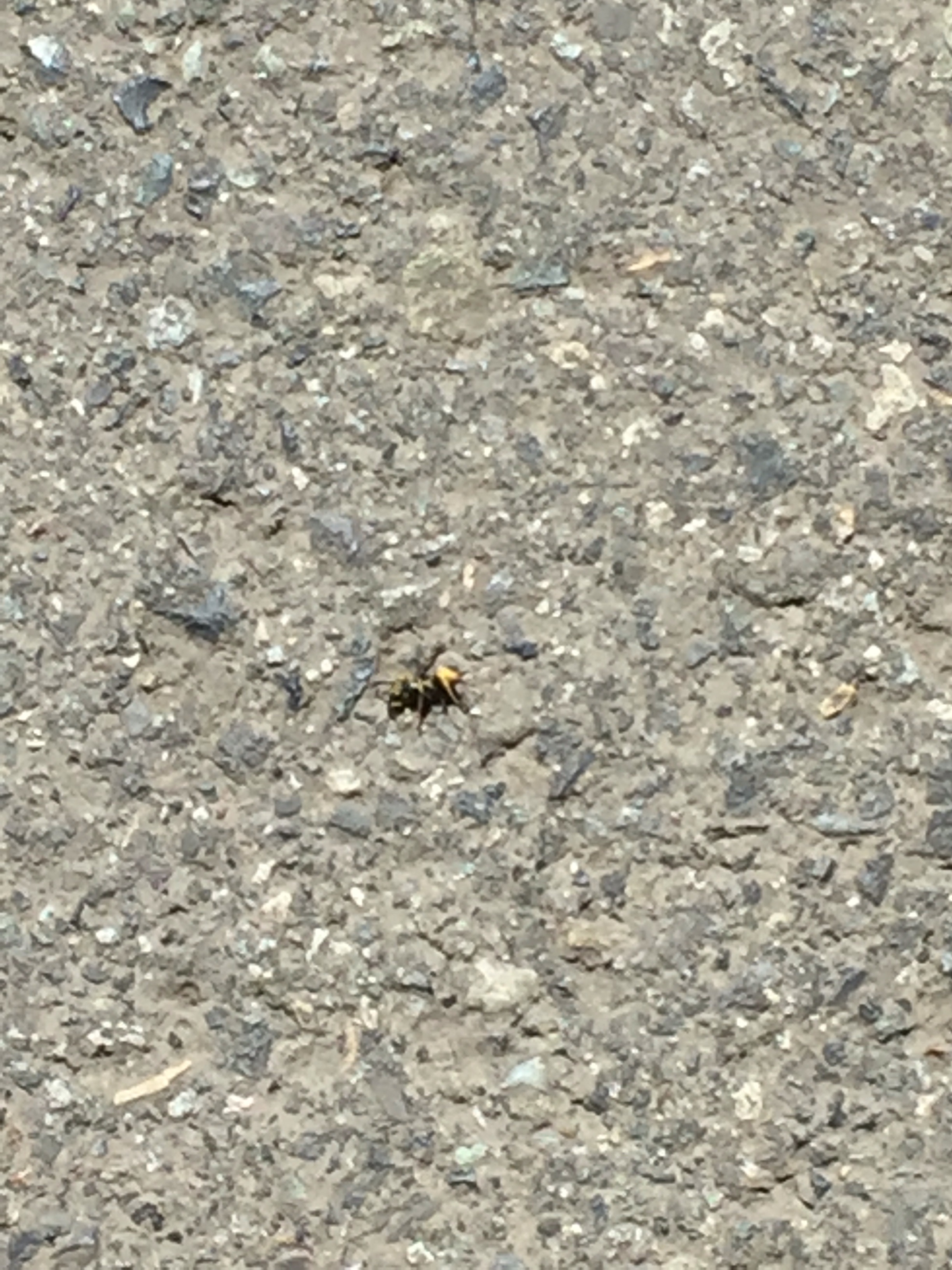 Pues estaba en lo cierto, una puta abeja picándome y alcancé a matarla cuando me golpeé el brazo con la rodilla.