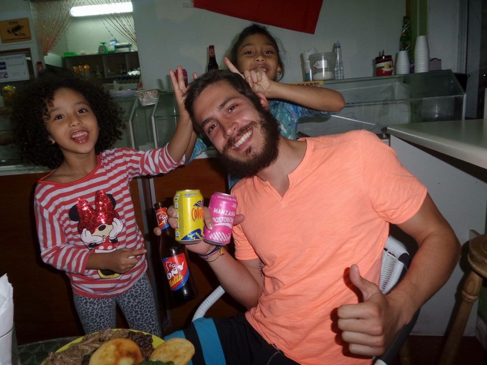Pero ahí no termina el carretazo, después de esto, nos vamos a comer con sus dos niñas, pero no a cualquier sitio… Había mandado a hacer una bandeja paisa y me tenían colombiana, manzana Postobón, Pony Malta… Mi cara de felicidad lo dice todo… ¡Llevaba demasiado tiempo sin comer tan rico!