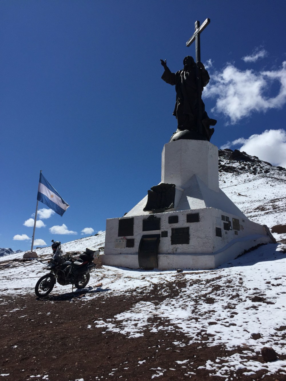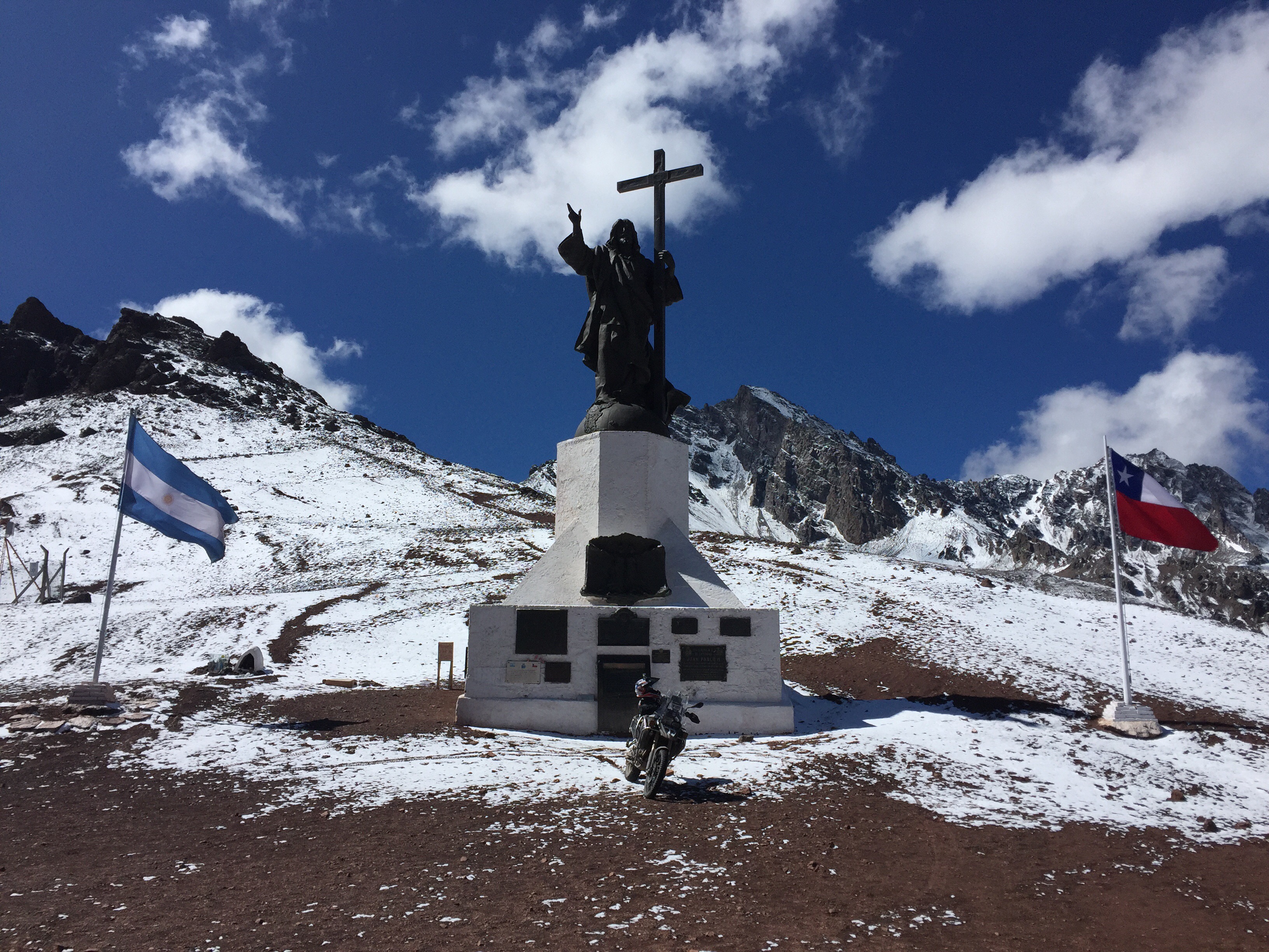 Al llegar al Cristo, me di cuenta que este era mitad argentino y mitad chileno, estaba justo en el centro de la montaña, que es la división de estos dos países.