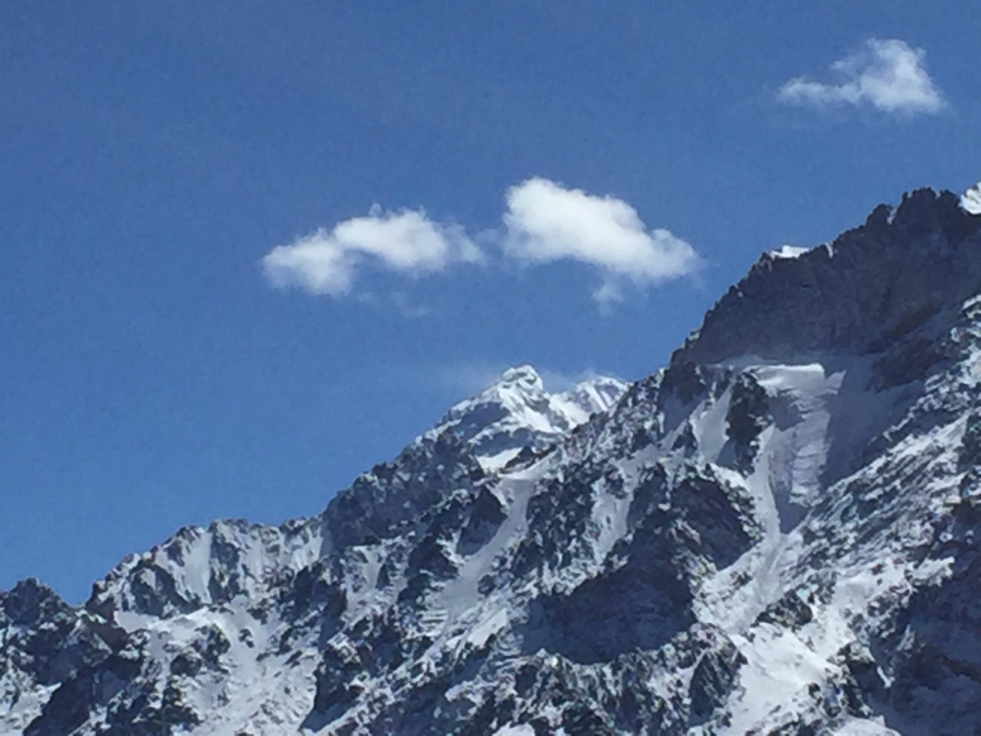 El viento es tan fuerte a esa altura (6,962 msnm, el más alto por fuera de Asia), que cuando sopla la nieve, parece que fueran nubes (le llaman viento blanco).