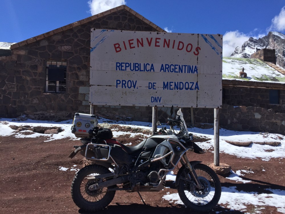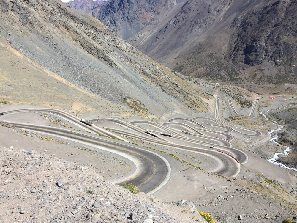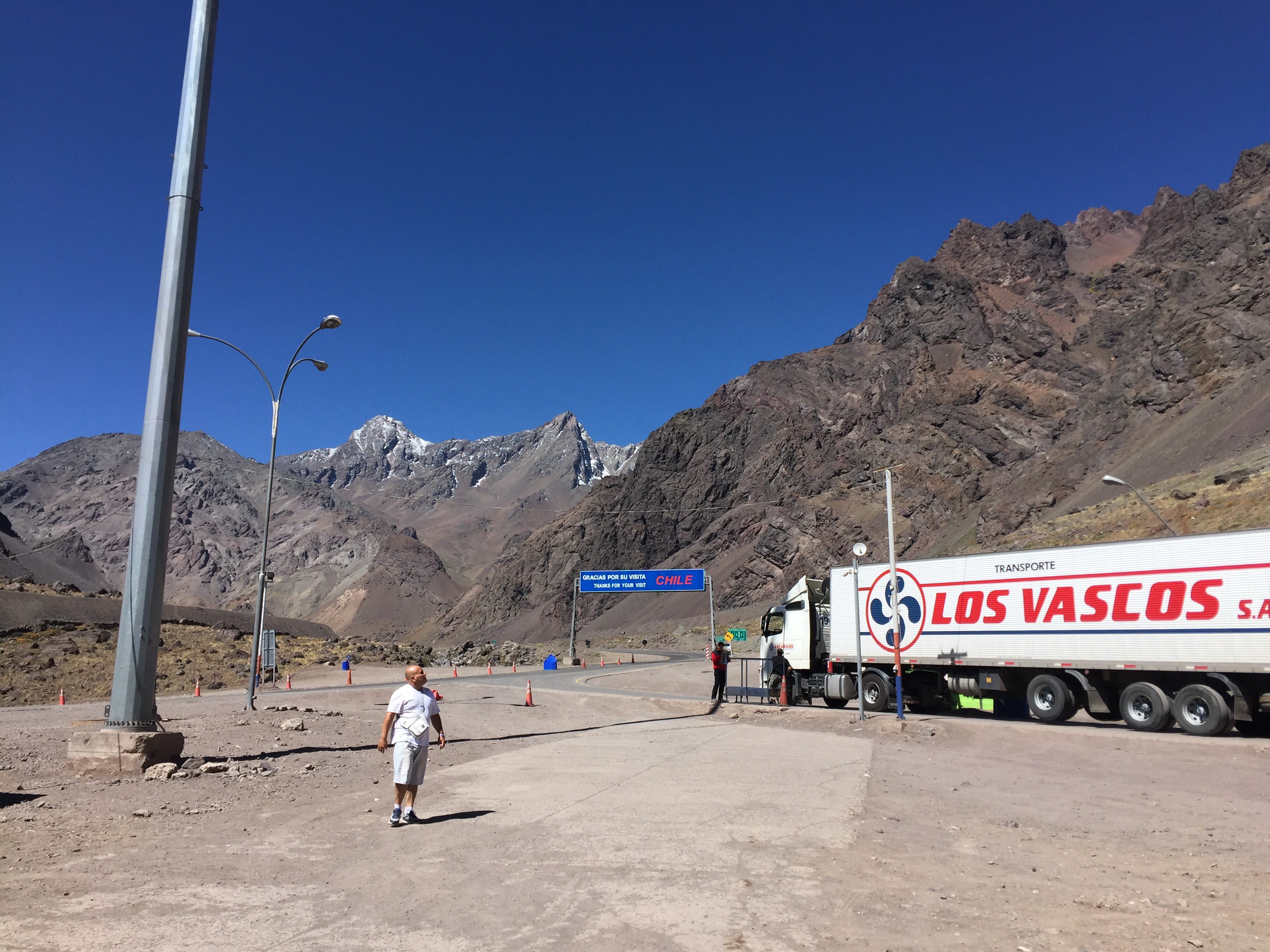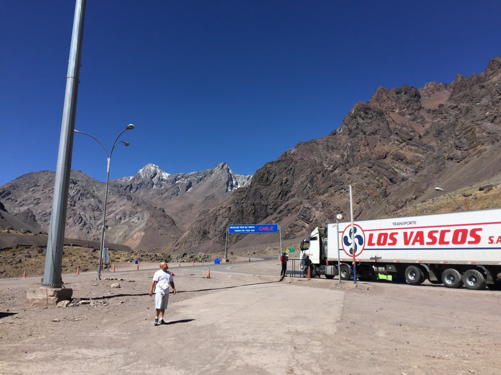 Tomo la vía 57 hasta un pueblo que se llama Los Andes, de ahí cojo la vía 60 o más conocida como ruta Los Libertadores, que es espectacular, buenas curvas y va uno bordeando el río Juncal hasta que empiezan los famosos caracoles (de bajada tomaré fotos). Después paso el complejo aduanero chileno y cuando voy a hacer migración, el man que me atendió me dice que como voy saliendo de Chile, todos los trámites se hacen en el complejo binacional del lado Argentino, que está después del Aconcagua…