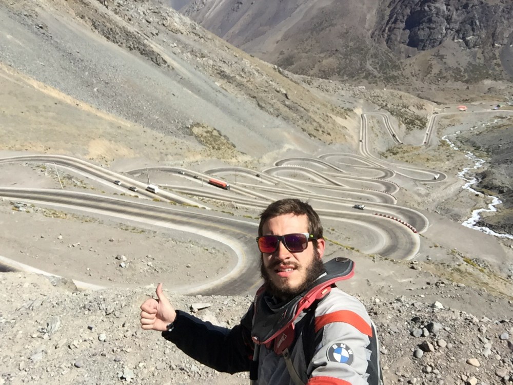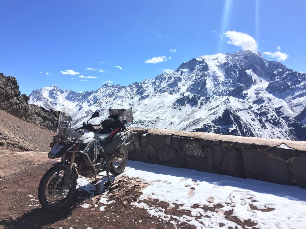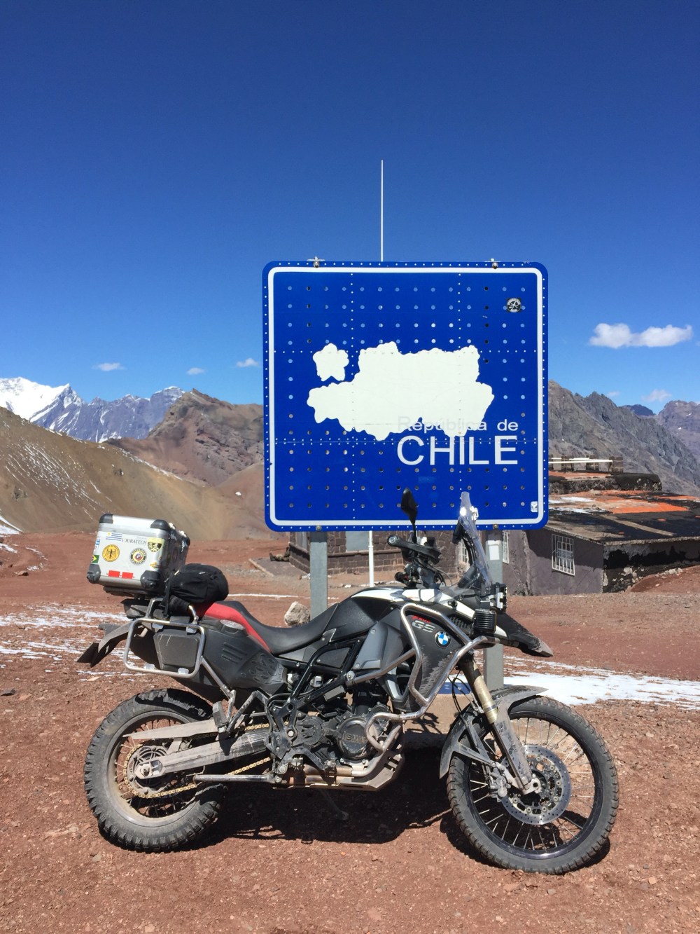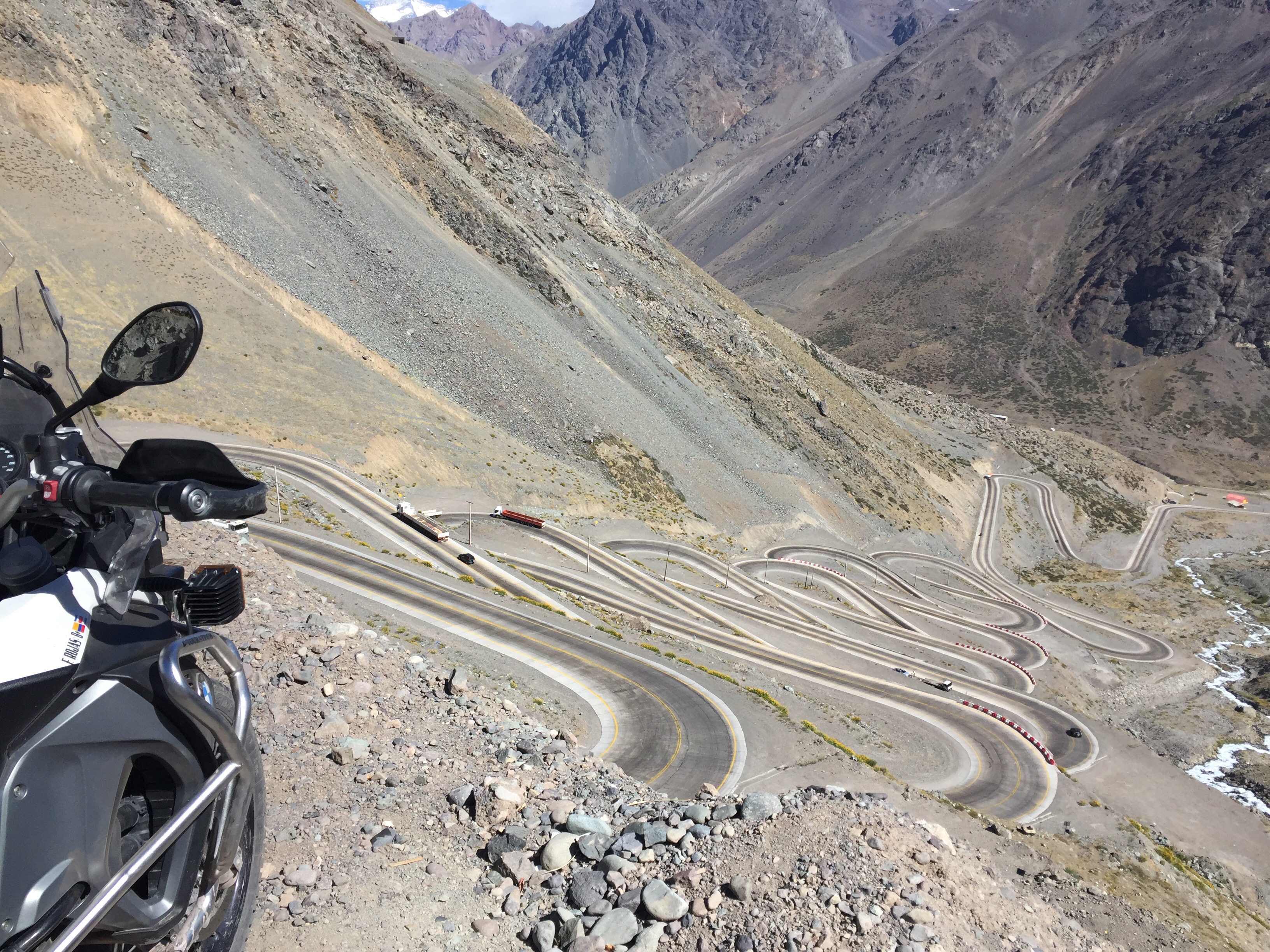 Tomo la vía 57 hasta un pueblo que se llama Los Andes, de ahí cojo la vía 60 o más conocida como ruta Los Libertadores, que es espectacular, buenas curvas y va uno bordeando el río Juncal hasta que empiezan los famosos caracoles (de bajada tomaré fotos). Después paso el complejo aduanero chileno y cuando voy a hacer migración, el man que me atendió me dice que como voy saliendo de Chile, todos los trámites se hacen en el complejo binacional del lado Argentino, que está después del Aconcagua…