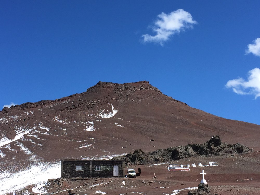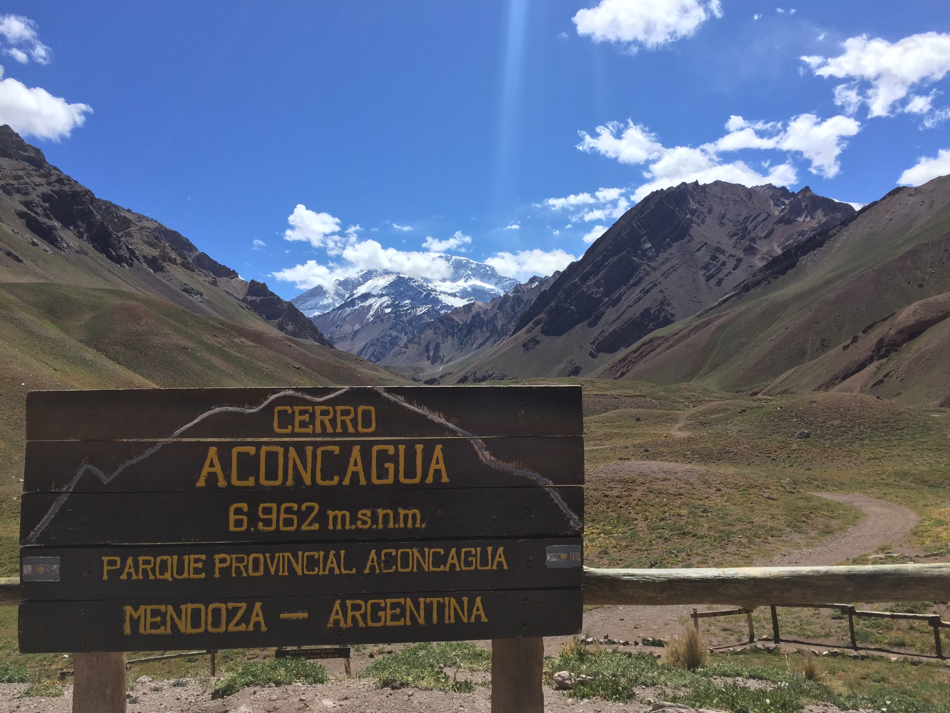 Llego a la entrada del cerro Aconcagua (afortunadamente es antes del complejo fronterizo binacional, entonces no me toca hacer migración ni aduanas). Ahí pago 20 pesos argentinos, entro un km más hasta el parqueadero y a caminar media hora para llegar al mirador