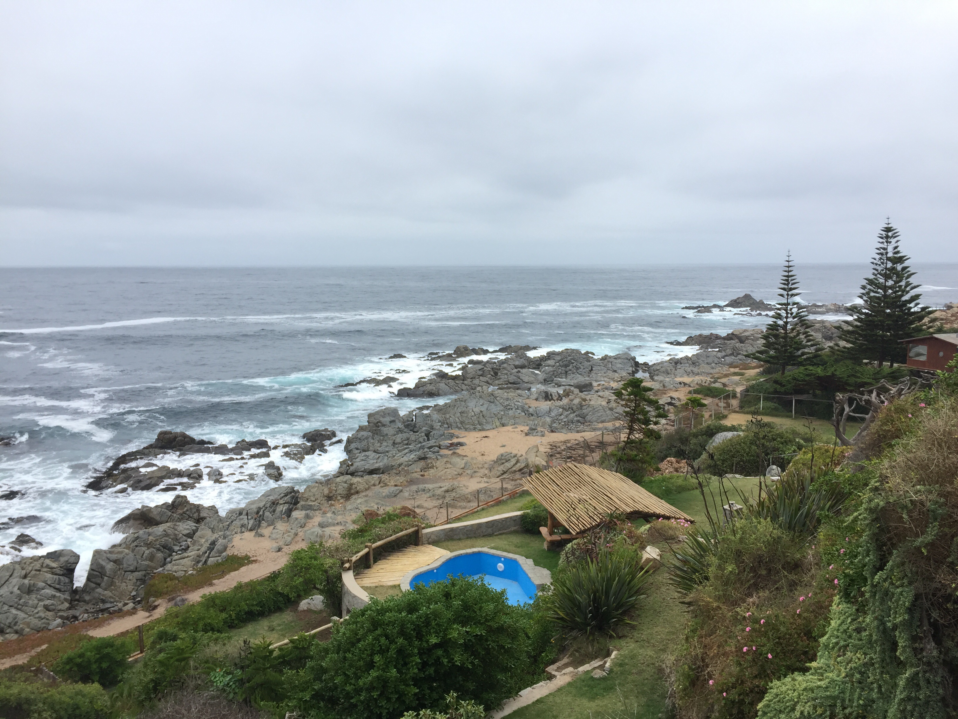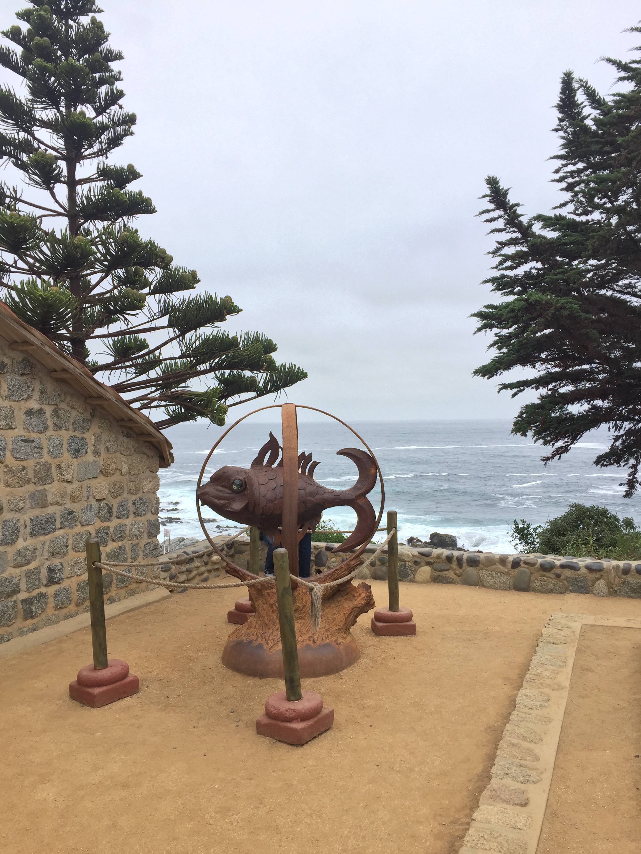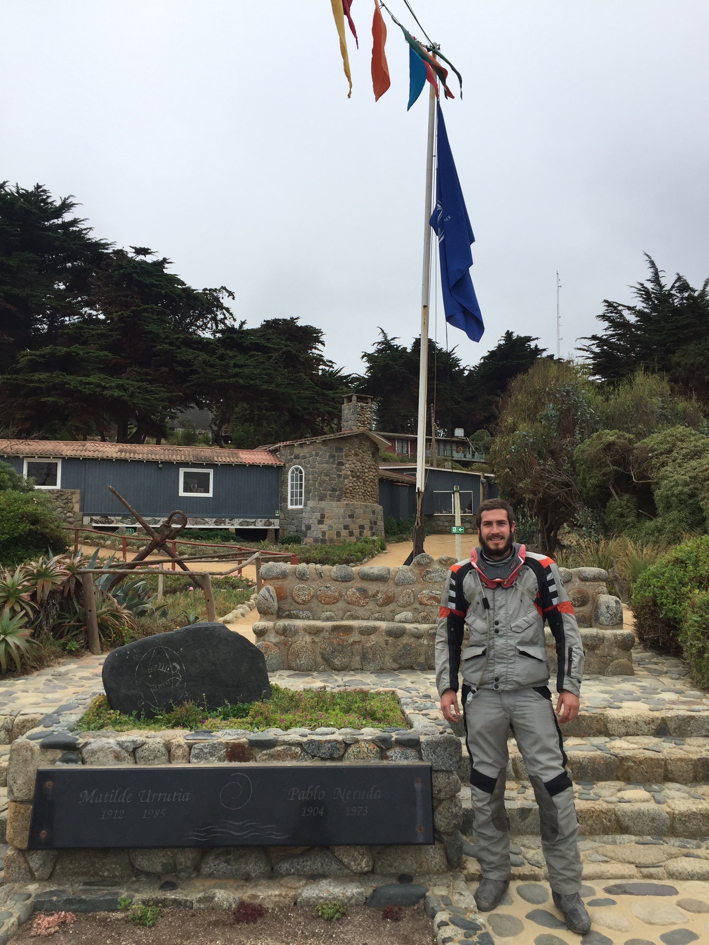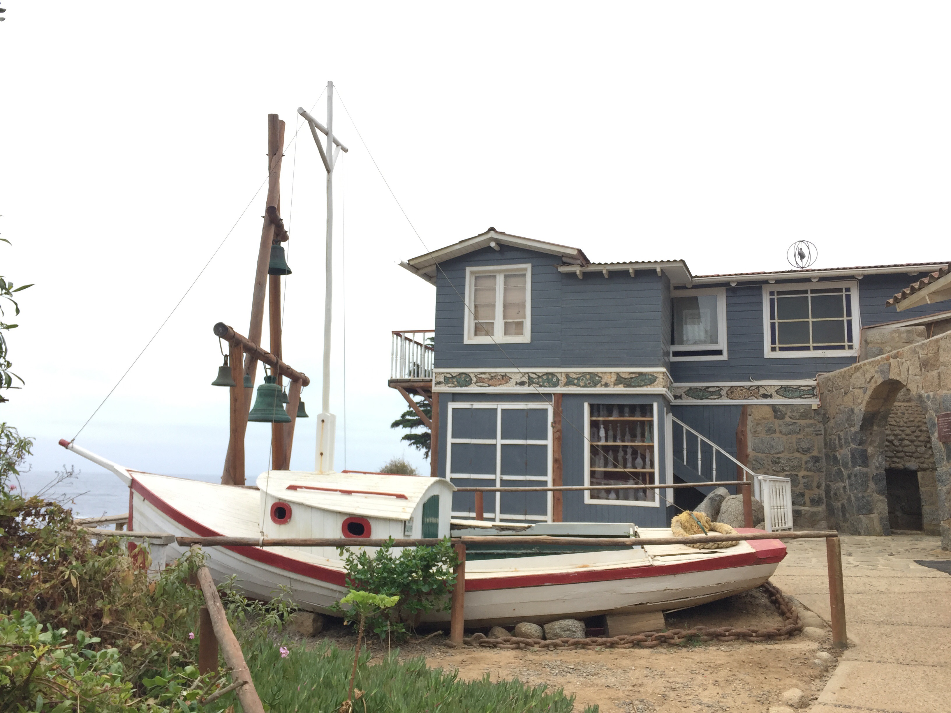Me despedí de Loretta y Daniel, muy agradecido por su hospitalidad. Desayuno en una Copec y salgo para Isla Negra, donde está la casa de Pablo Neruda y su tumba.