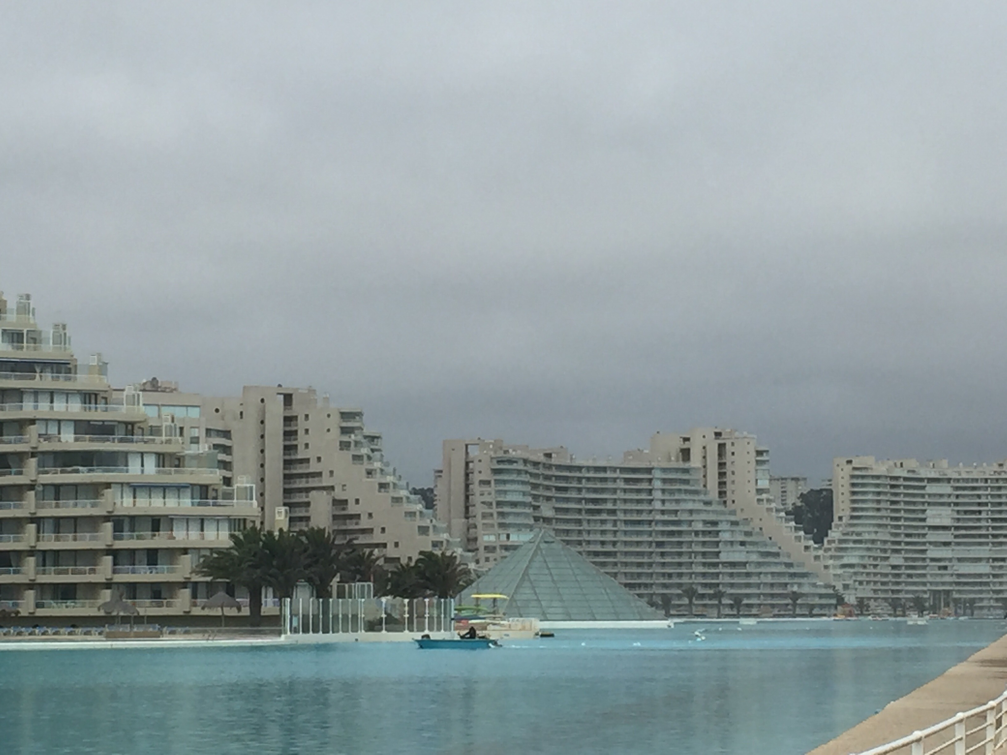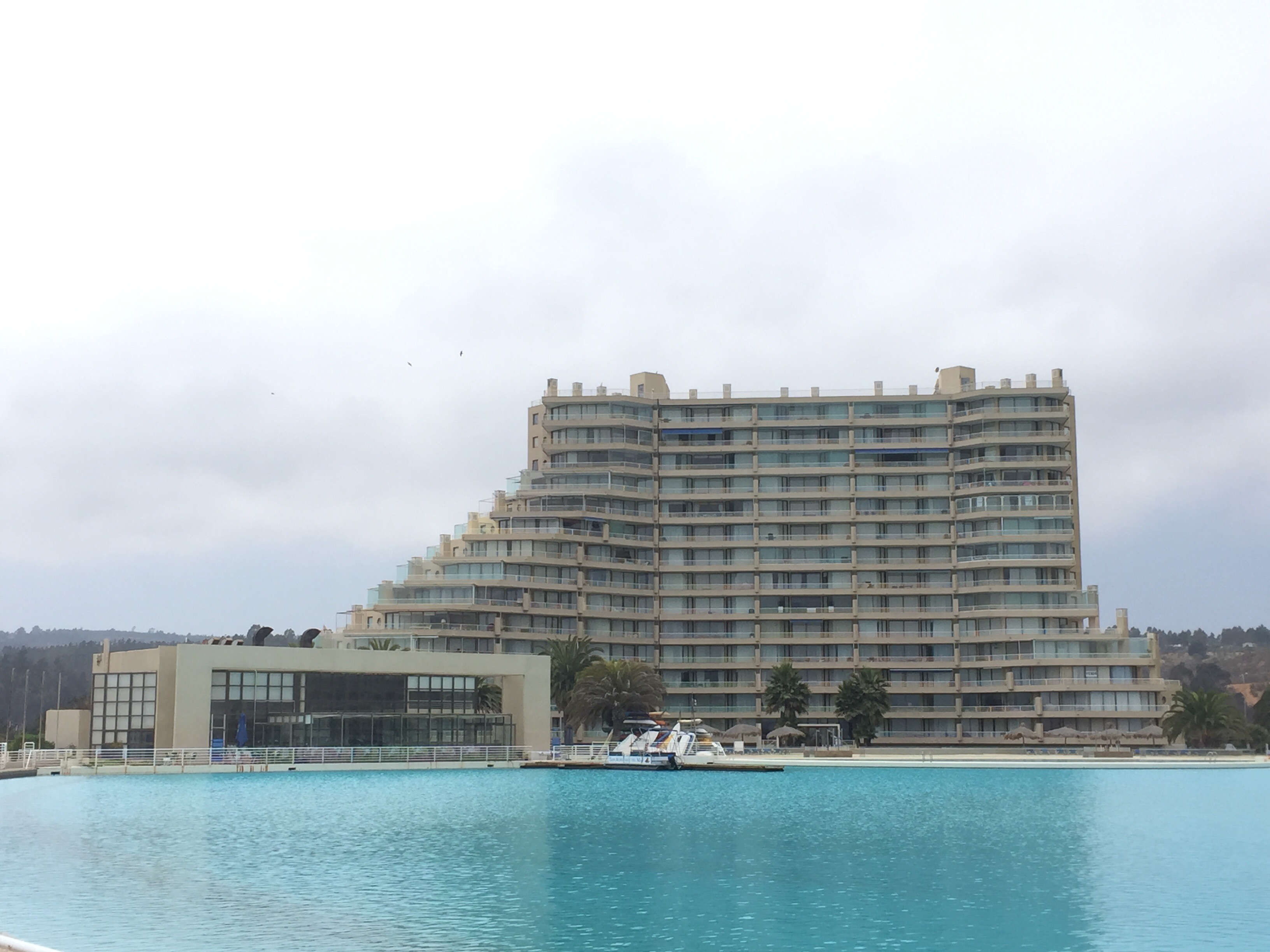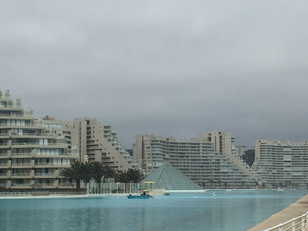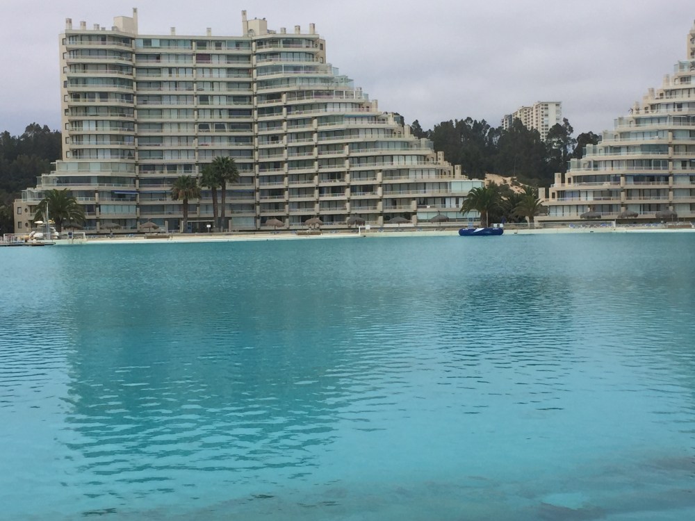 De ahí, me voy hacia Algarrobo a ver la piscina más grande del mundo en San Alfonso del Mar, que tiene 1,200 metros de larga (tienen kayaks y lanchas adentro). Quise entrar para tomar fotos, pero no me dejaron. No es nada del otro mundo, pero quedaba de camino.