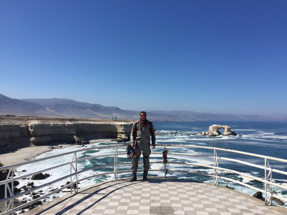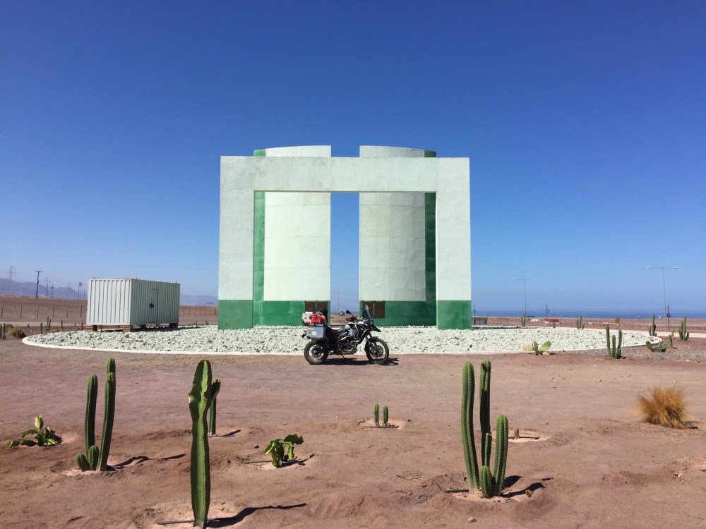 Me levanto temprano y la novia de Jorge ya tenía desayuno listo. Después de arreglarme, me despido de ellos y les comento lo agradecido que estoy por su hospitalidad. Salgo hacia La Portada (al norte de la ciudad) y el Hito al Trópico de Capricornio (al lado del aeropuerto) ambos por la ruta 1.