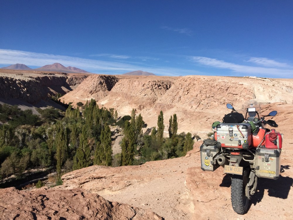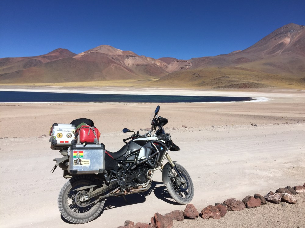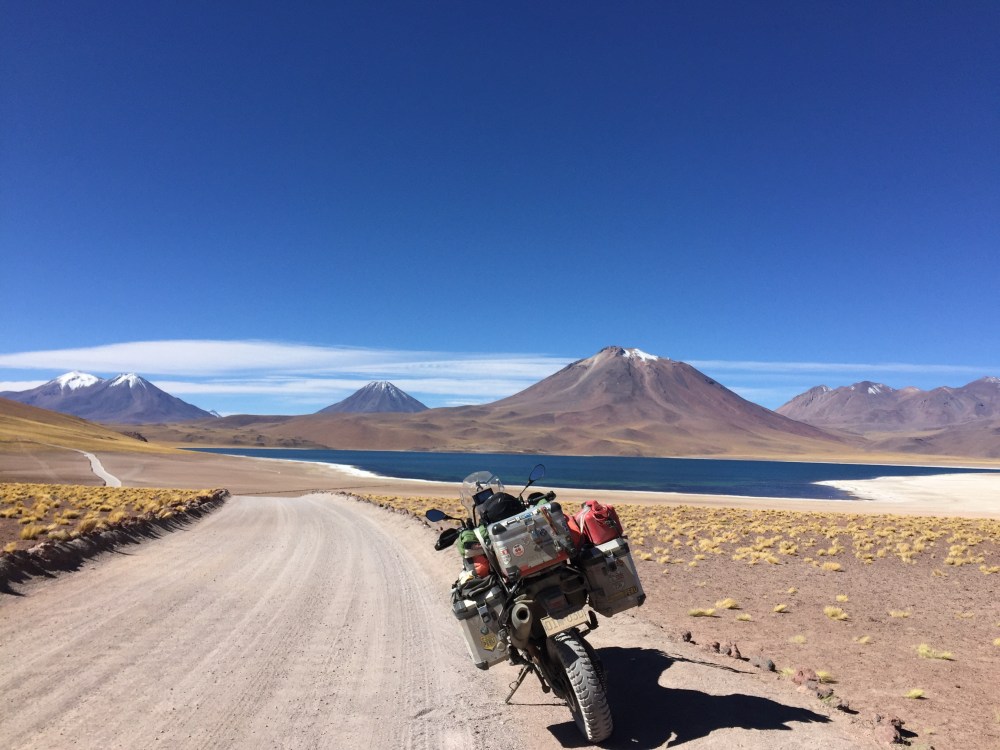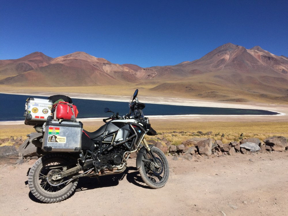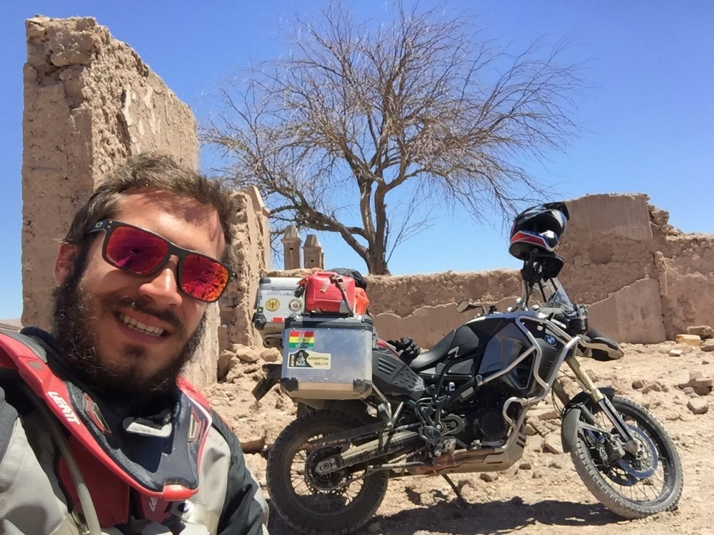Toca manejar como por ocho km de ripio. Cuando al fin llegué a las Tres Marías, obviamente metí la moto para tomarme la foto con ella. Un pendejo todo Bravo llega y me dice en inglés: «hey man that’s not a parking lot», para después decirle a una vieja: «es que eso ahí no es parqueadero». Le respondí: «pues viejo, el día que Ud maneje moto por todo Suramérica, cruce nueve países y haga más de 25 mil km, dígame que no me parquee acá, porque la foto con la moto, me la voy a tomar». En ese momento llega el Man de seguridad y me dice que por favor me mueva… Le respondí que sólo quiero una foto con la moto porque llevo muchos km manejados y se ofrece a tomármela. El otro pendejo quedó más picado que un putas… Lista la foto y muevo la moto… En eso se me acerca un español y me dice: «qué huevos los tuyos tío, ese gilipollas me ha puesto bronca por meterme con la bici y tú te habeís metió’ con la moto y encima el tío te ha tomao’ la foto»… Yo le respondí: «paaaarcero, uno venir hasta acá para no tomarse la foto con la motico…» 😜