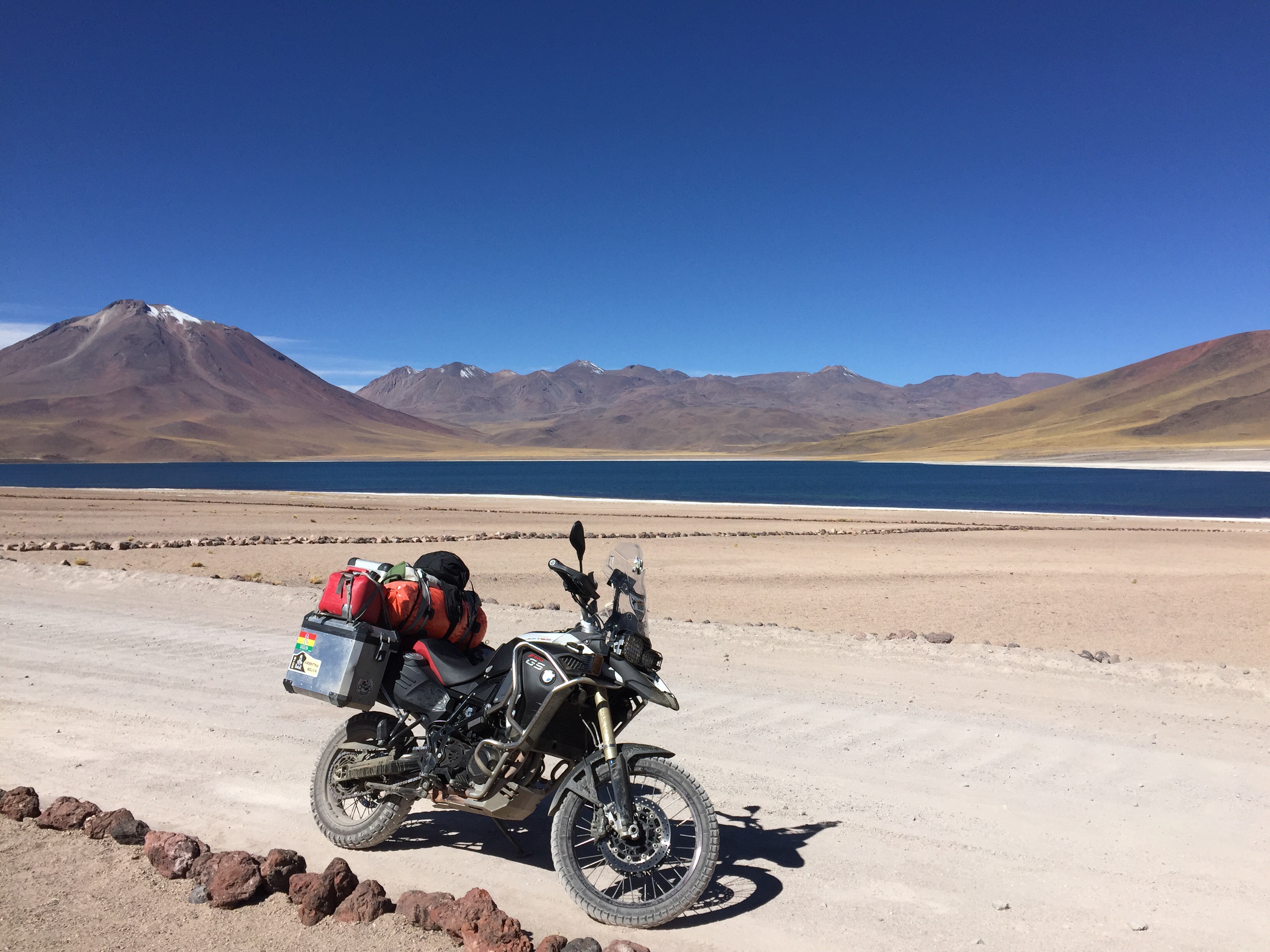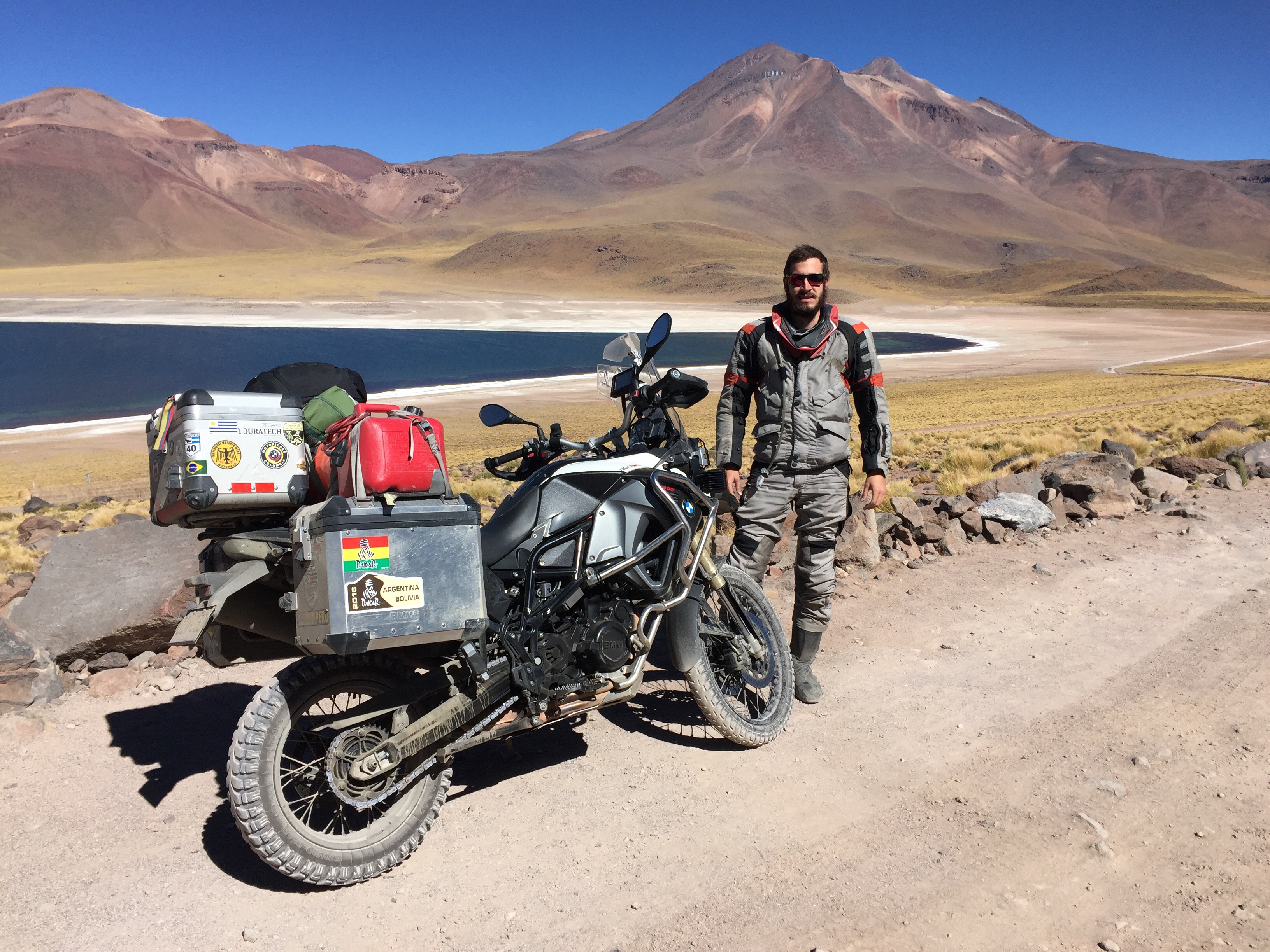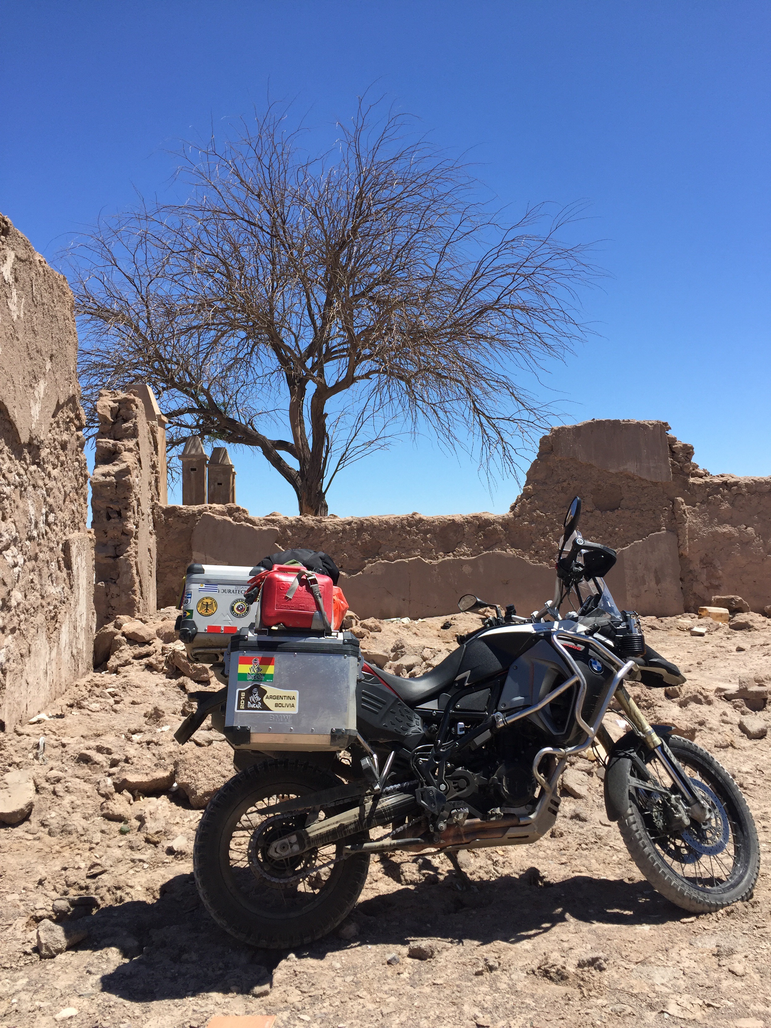 Toca manejar como por ocho km de ripio. Cuando al fin llegué a las Tres Marías, obviamente metí la moto para tomarme la foto con ella. Un pendejo todo Bravo llega y me dice en inglés: «hey man that’s not a parking lot», para después decirle a una vieja: «es que eso ahí no es parqueadero». Le respondí: «pues viejo, el día que Ud maneje moto por todo Suramérica, cruce nueve países y haga más de 25 mil km, dígame que no me parquee acá, porque la foto con la moto, me la voy a tomar». En ese momento llega el Man de seguridad y me dice que por favor me mueva… Le respondí que sólo quiero una foto con la moto porque llevo muchos km manejados y se ofrece a tomármela. El otro pendejo quedó más picado que un putas… Lista la foto y muevo la moto… En eso se me acerca un español y me dice: «qué huevos los tuyos tío, ese gilipollas me ha puesto bronca por meterme con la bici y tú te habeís metió’ con la moto y encima el tío te ha tomao’ la foto»… Yo le respondí: «paaaarcero, uno venir hasta acá para no tomarse la foto con la motico…» 😜