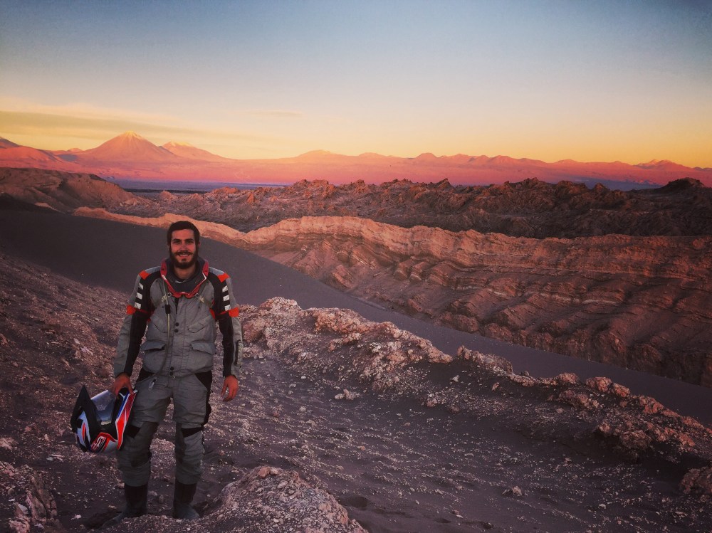 Por fortuna di con la entrada del Valle de la Luna, por el lado de la Piedra del Coyote (toca coger otra vez la vía principal hacia Calama). Claramente a las 9:00 p.m. ya estaba cerrado, pero puedo parquear mi moto y quedarme una media hora admirando el cielo, completamente solo (al menos eso cree uno 🤔), completamente oscuro, en medio del desierto… No puedo negar que se me aguaron los ojos… Nunca había visto el cielo así… Le doy gracias a Dios por darme la oportunidad de experimentar estoy poder apreciar las cosas simples de la vida… Esa noche pude ver satélites, estrellas fugaces y más estrellas de las que jamás creo que volveré a ver en mi vida… Es una lástima que en las fotos no se aprecie nada… Por eso tomé screenshots a una app para el celular que tengo para mostrarme las constelaciones: