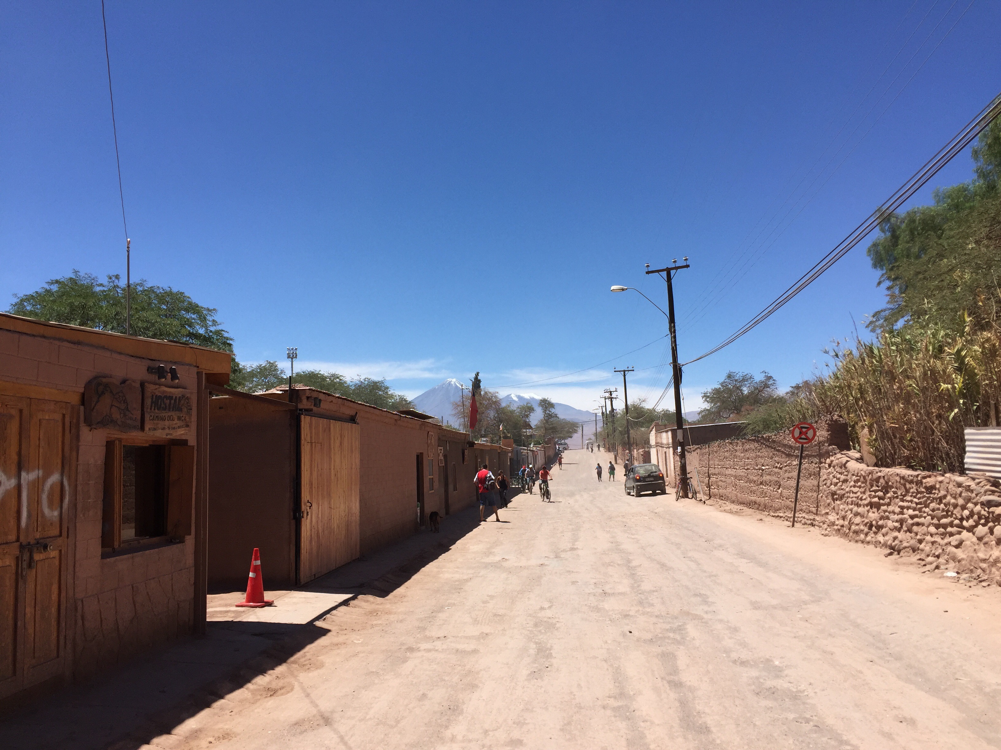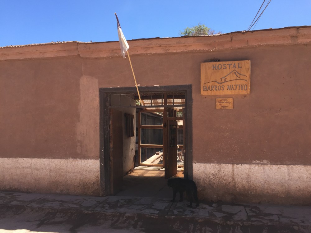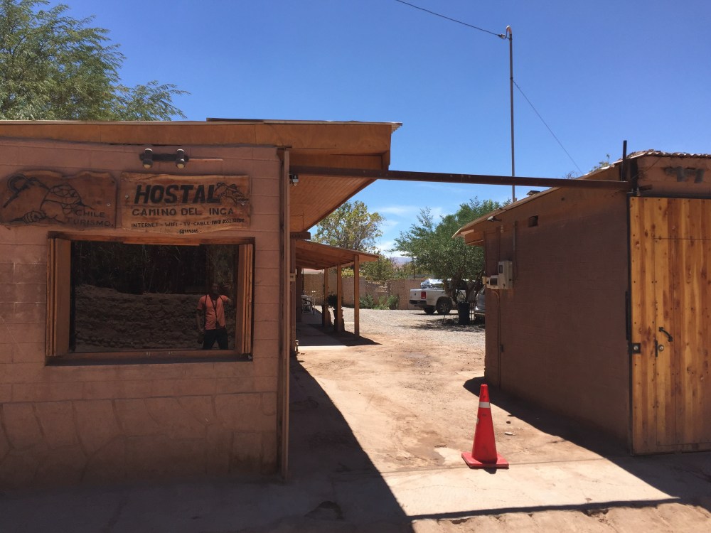 Busqué hostal con parqueadero, hasta que una hora después, me encontré Barros Nativo, que queda en la calle Licancabur. Uno parquea en el hostal del lado (Camino del Inca), que es del papá del man de Barros Nativo. Nada mal para costar ocho lucas (el hostal más barato que pagué en Chile).