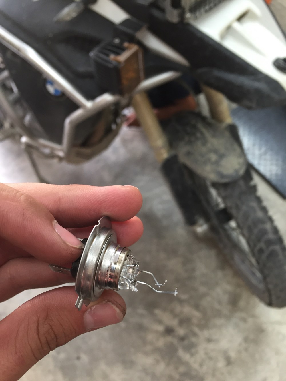 Acá, la moto me prendió un testigo de bombillo delantero… Yo tengo otro de repuesto, pero lo cambio cuando llegue, así que sólo voy con las exploradoras Rigid.
