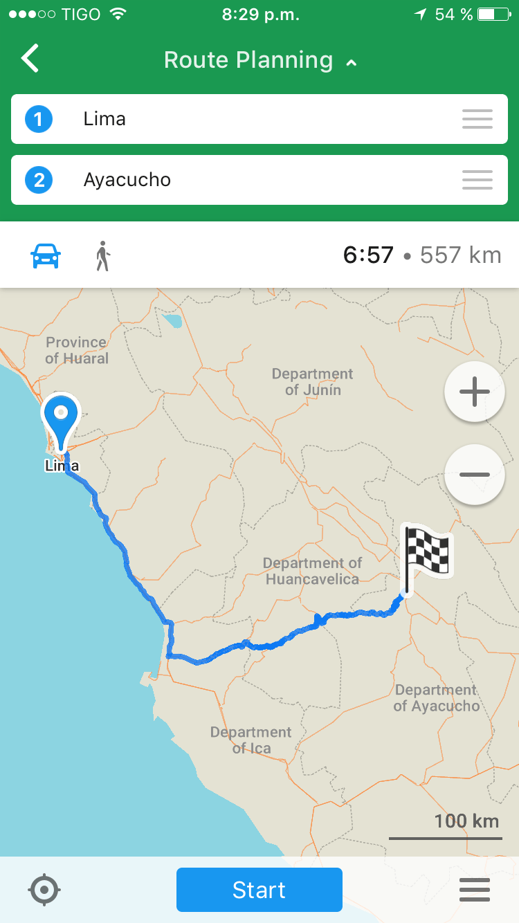 Para ir a Lima, se toma la vía PE-28A. Tienen que echar gasolina en Ayacucho ya que en la vía casi no van a encontrar.
